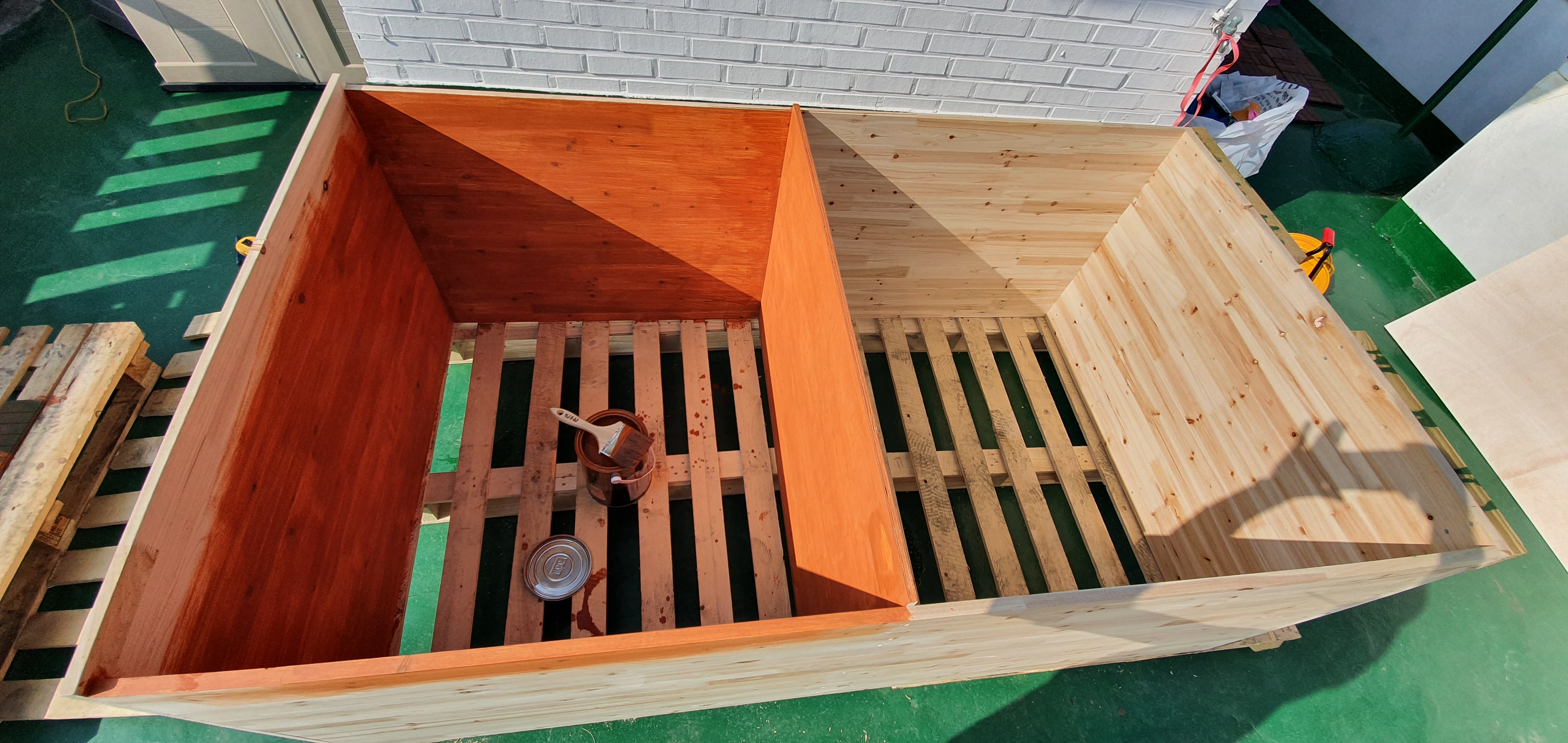 후판을 조립하기전에 오일 스테인 도색 작업을 먼저 진행하였습니다.