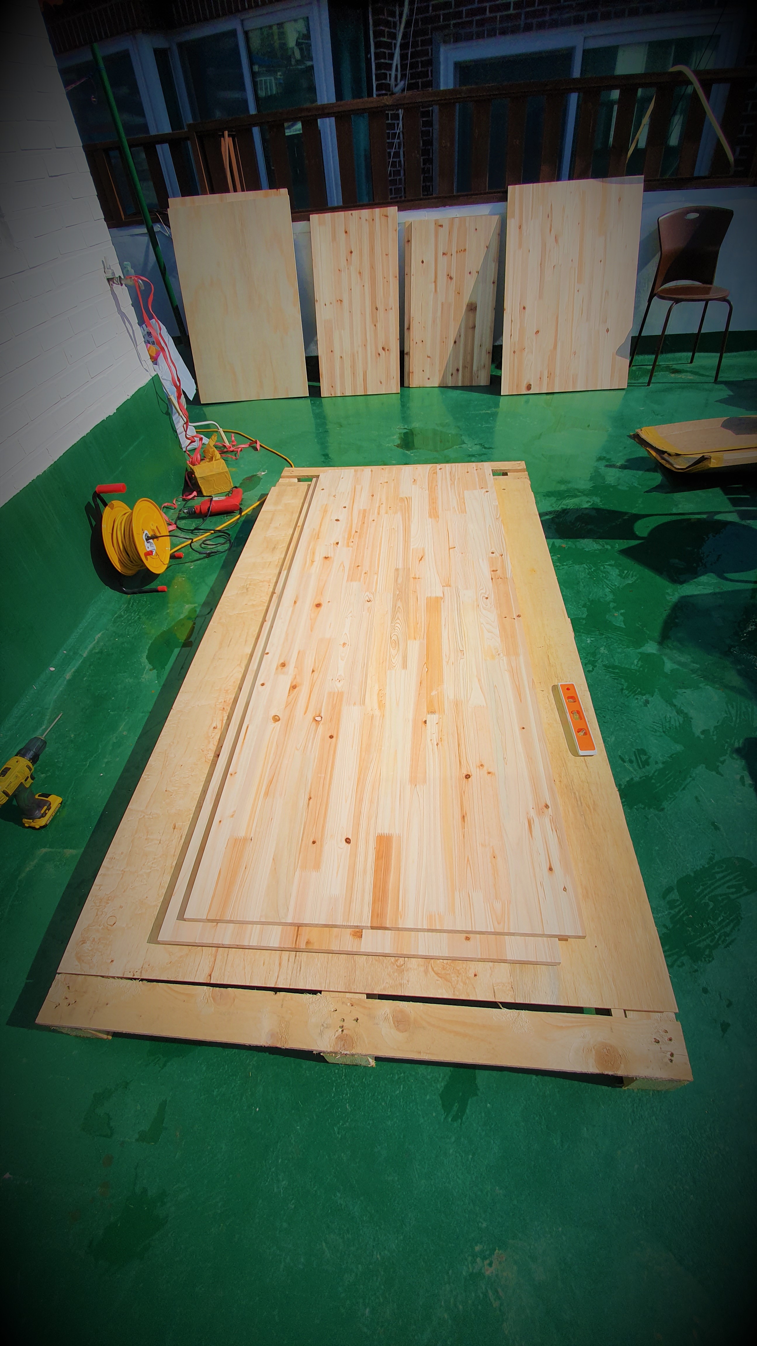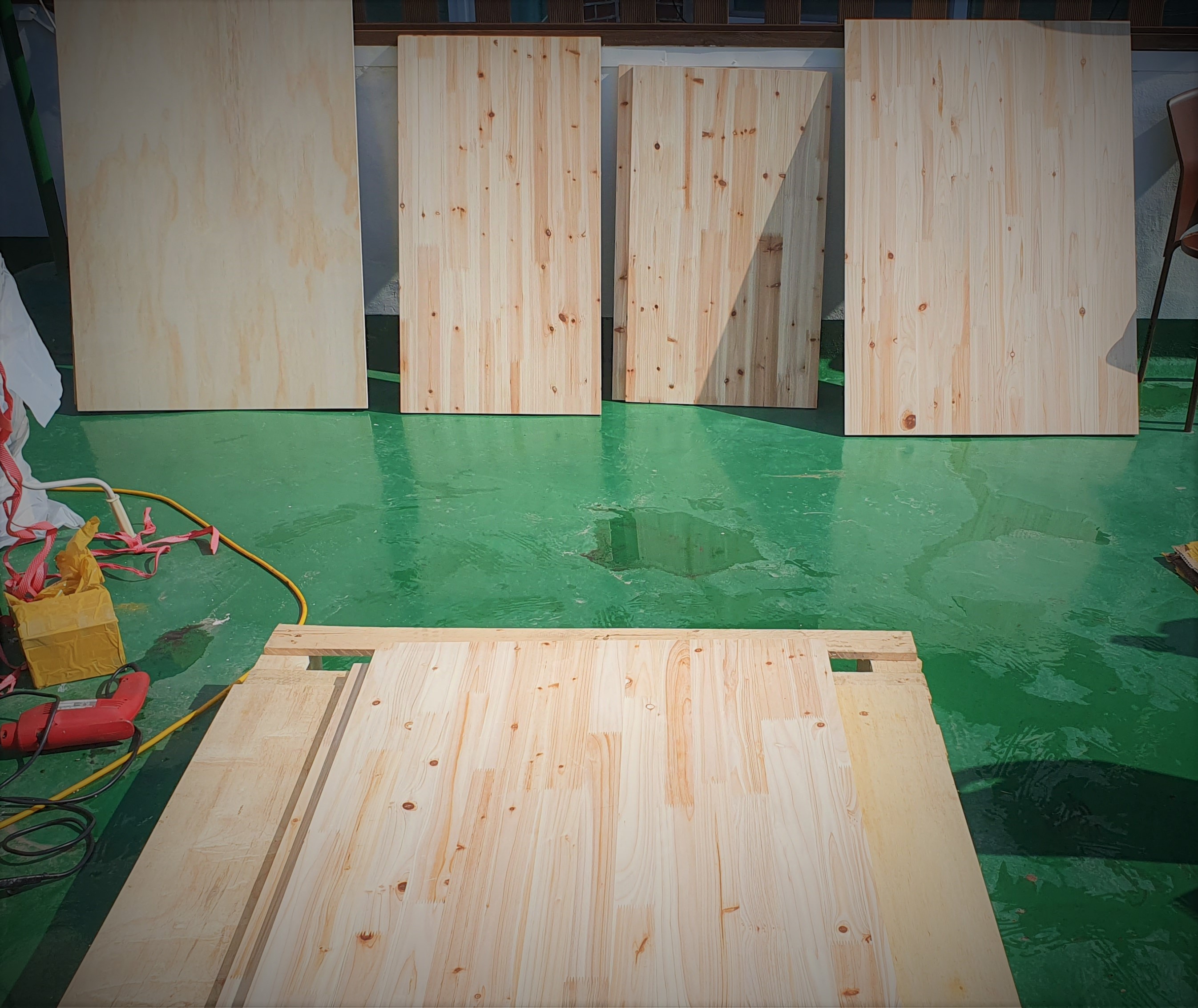 판재가 되는 집성목의 종류는 삼나무 집성목이 비교적 저렴했습니다.