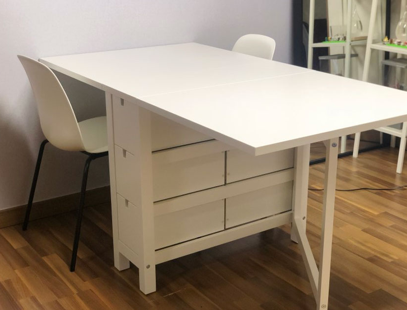 접이식이라 공간 활용도가 높았고, 중간에 양쪽으로 수납 가능한 서랍장이 있어