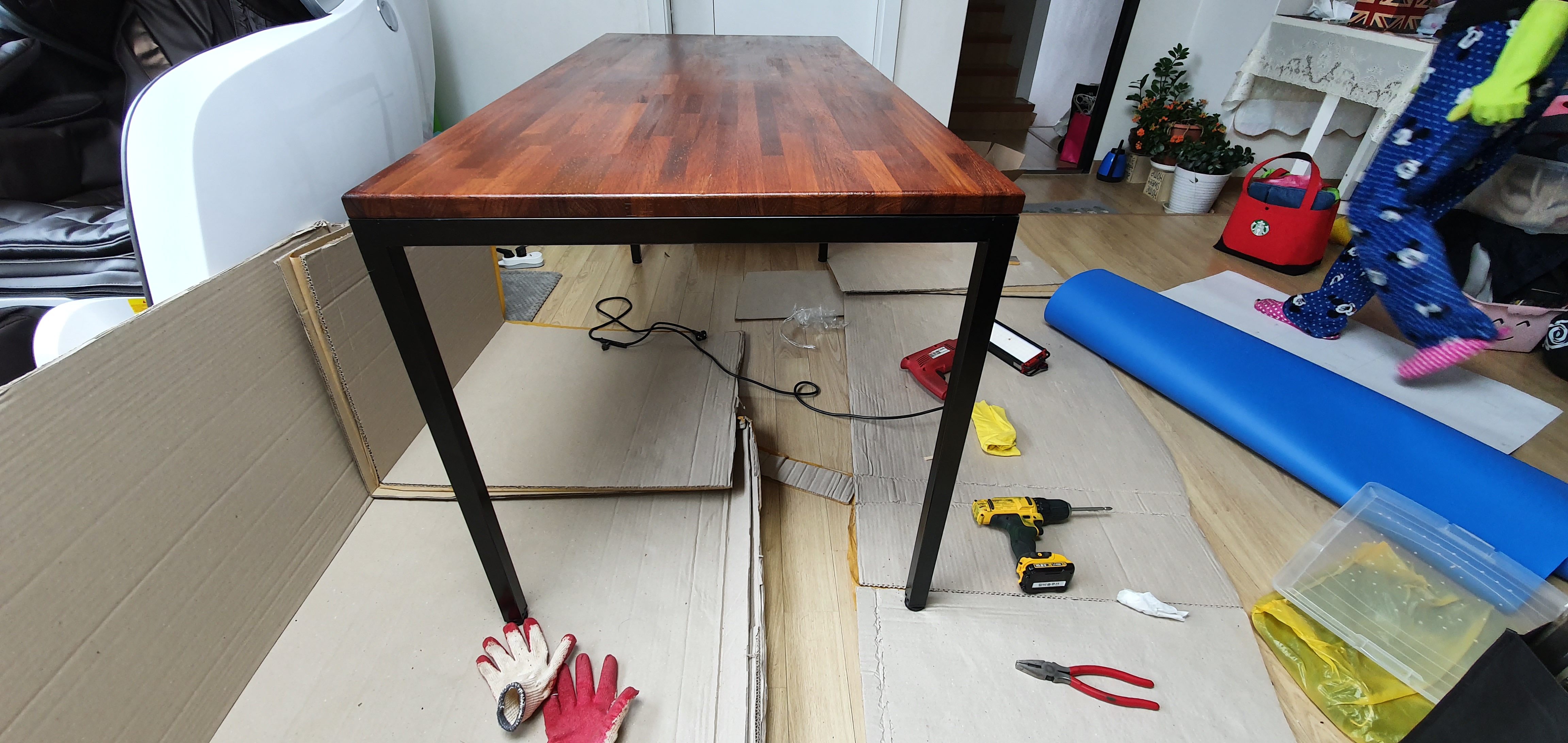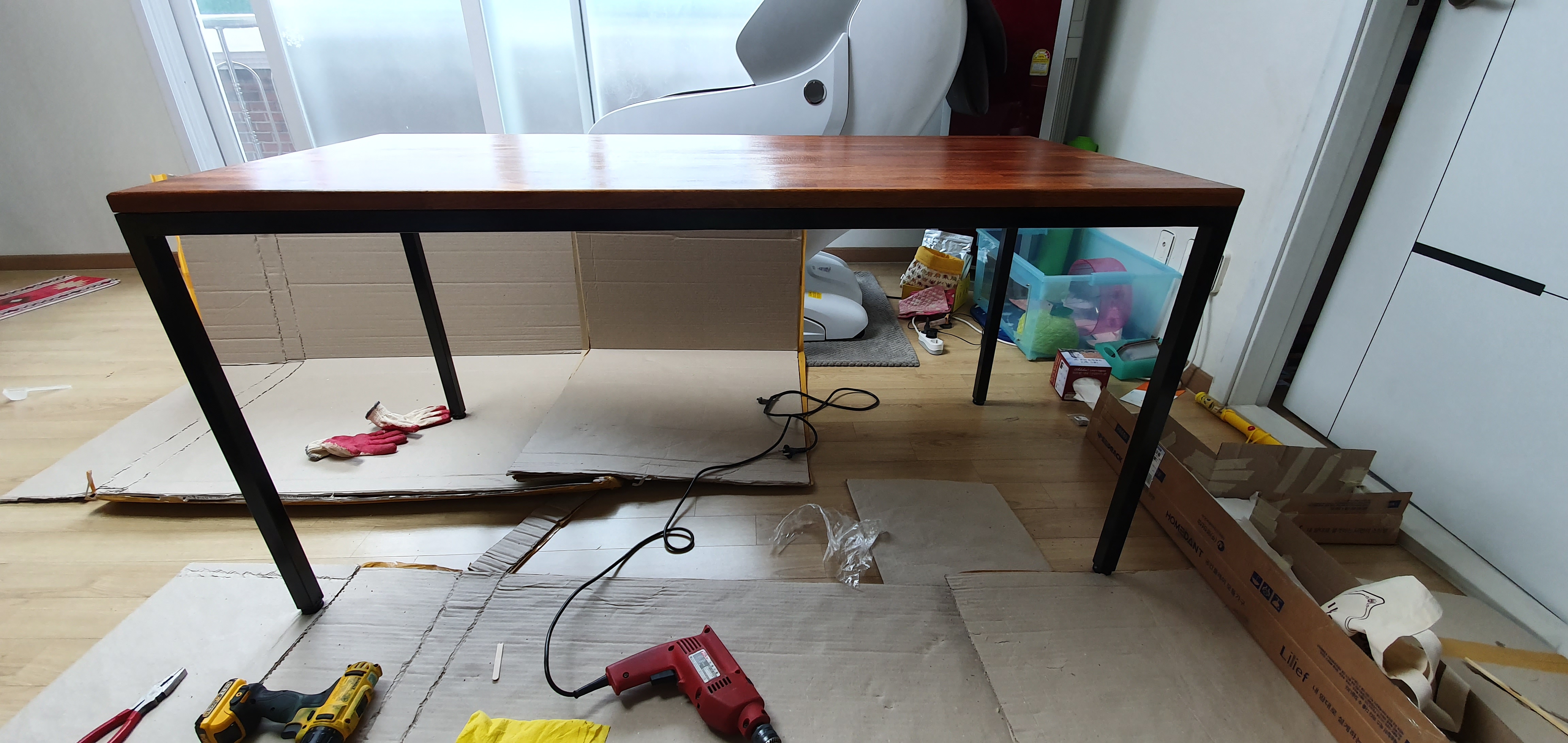 이제 맞춤 주문한 철제 다리와 상판만 조립해주면 완성입니다.
