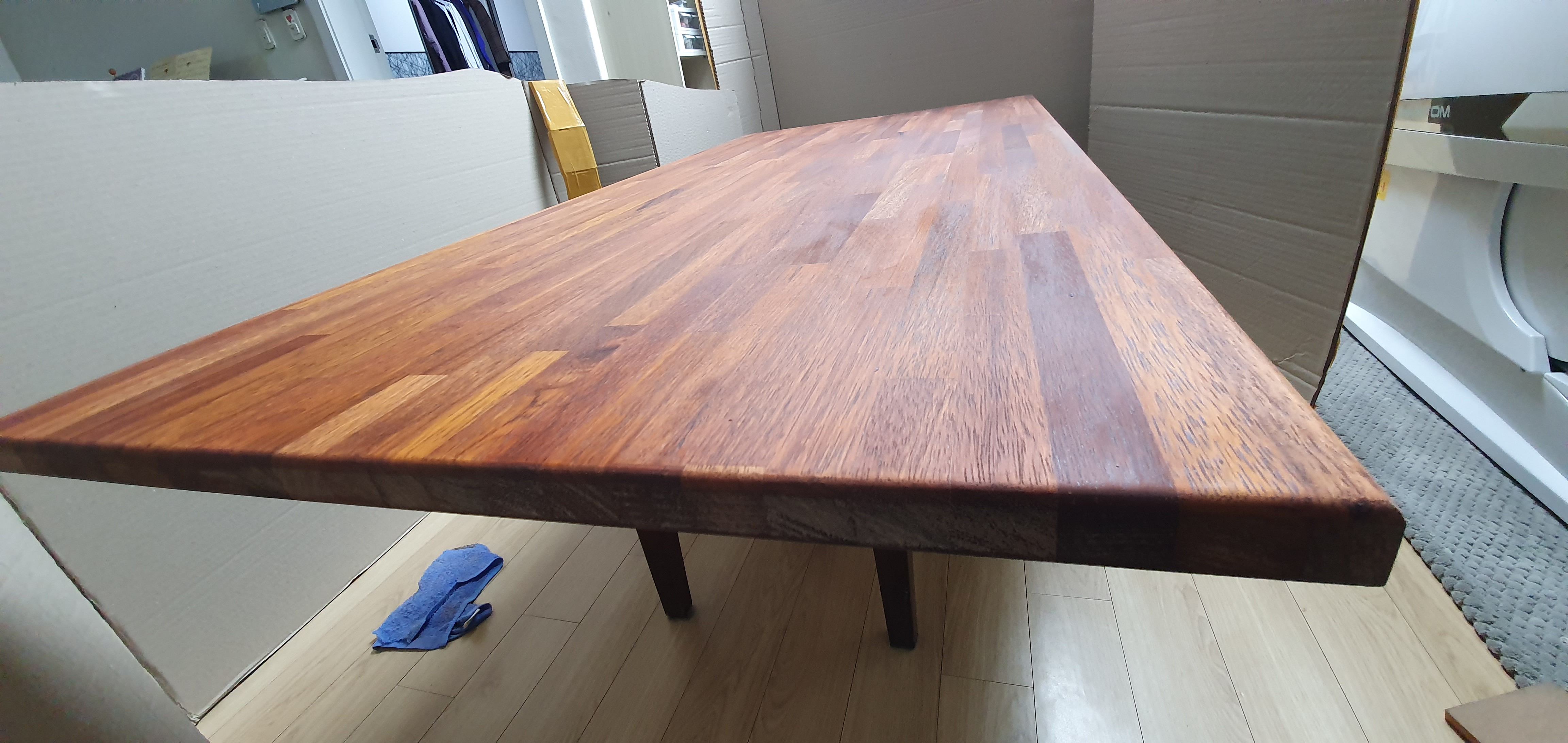 일단 멀바우 원목 6인용 식탁 셀프 제작은 여기서 마무리합니다.