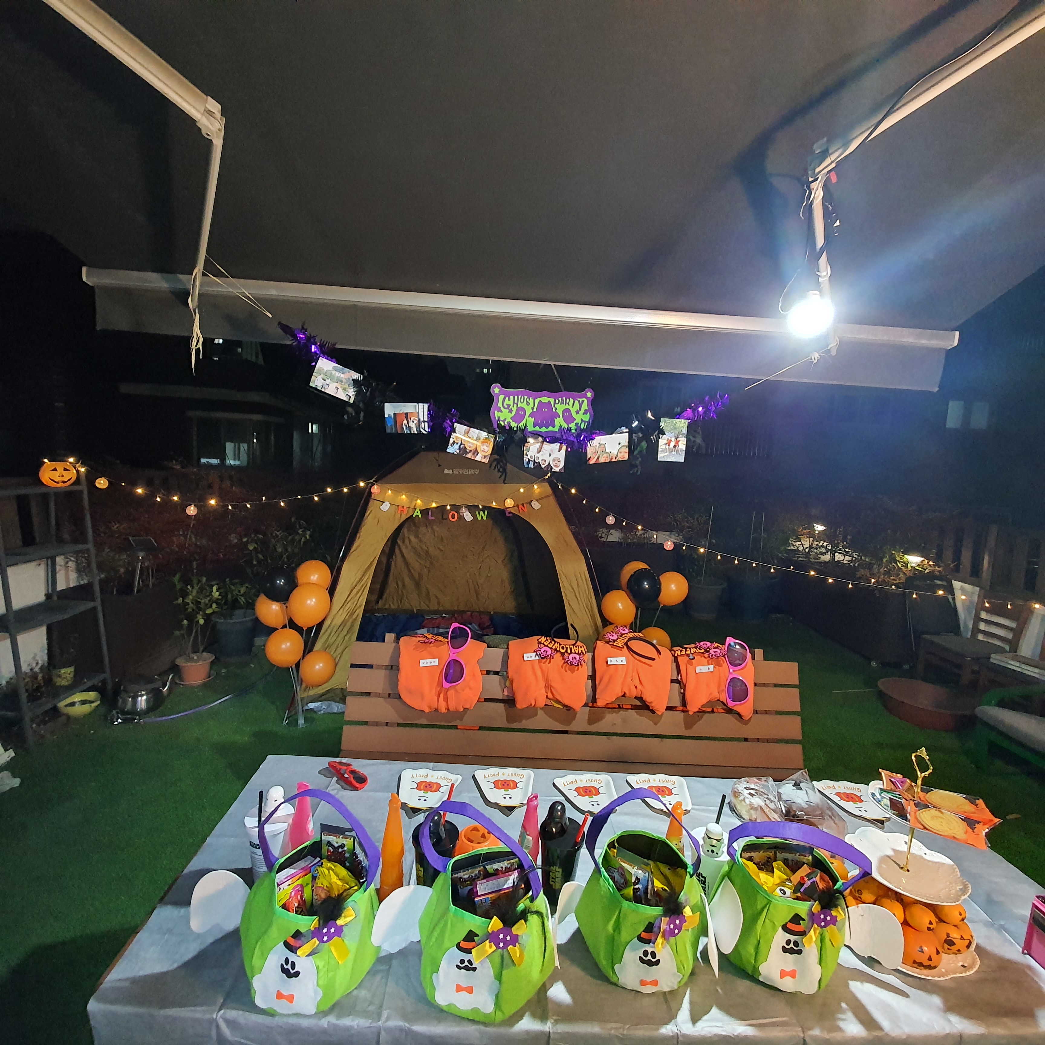 옥상에서 진행되는 할로윈 파티 준비가 모두 끝났습니다.