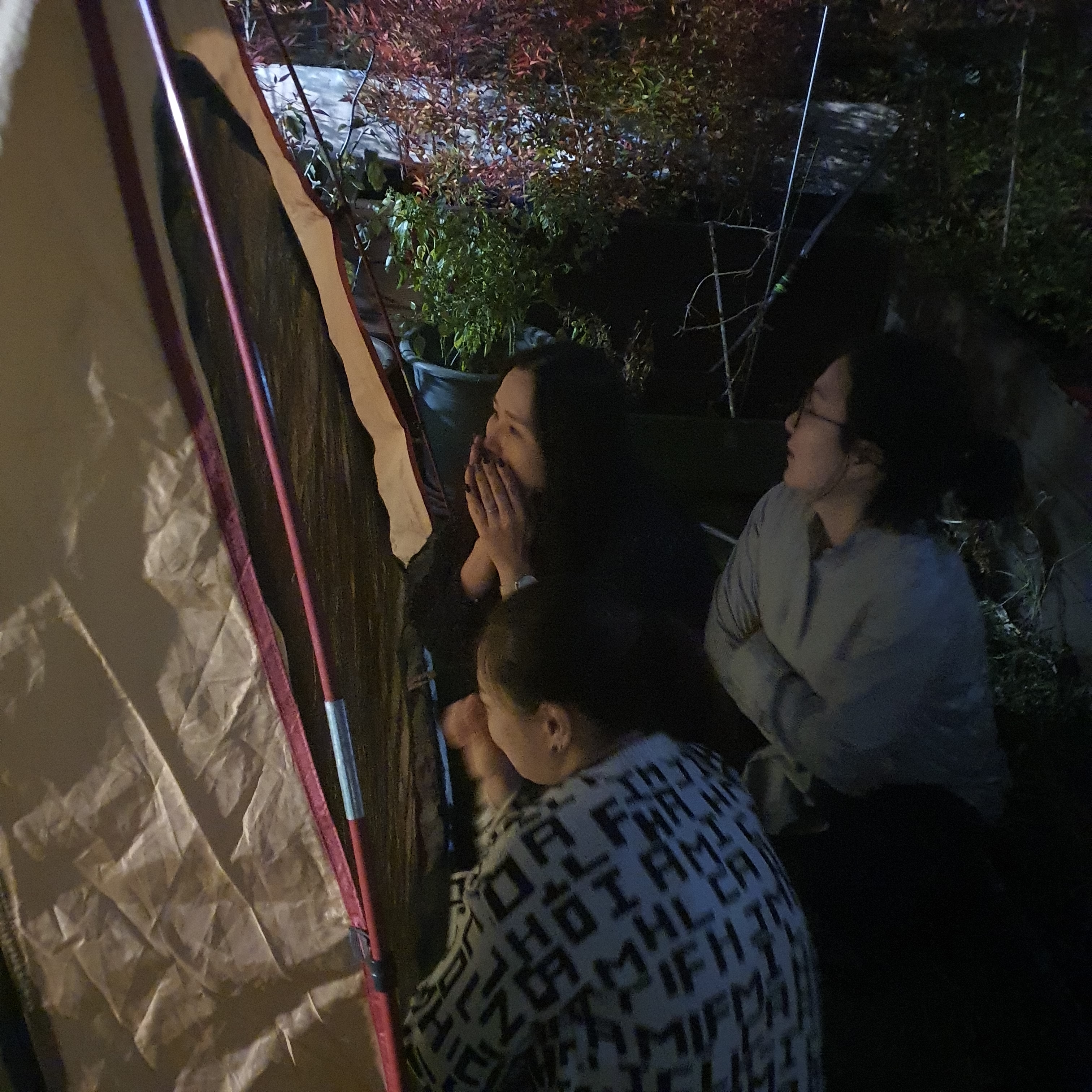 텐트 뒤에는 열심히 준비한 엄마들이 숨어서 하이라이트를 감상하고 있습니다.