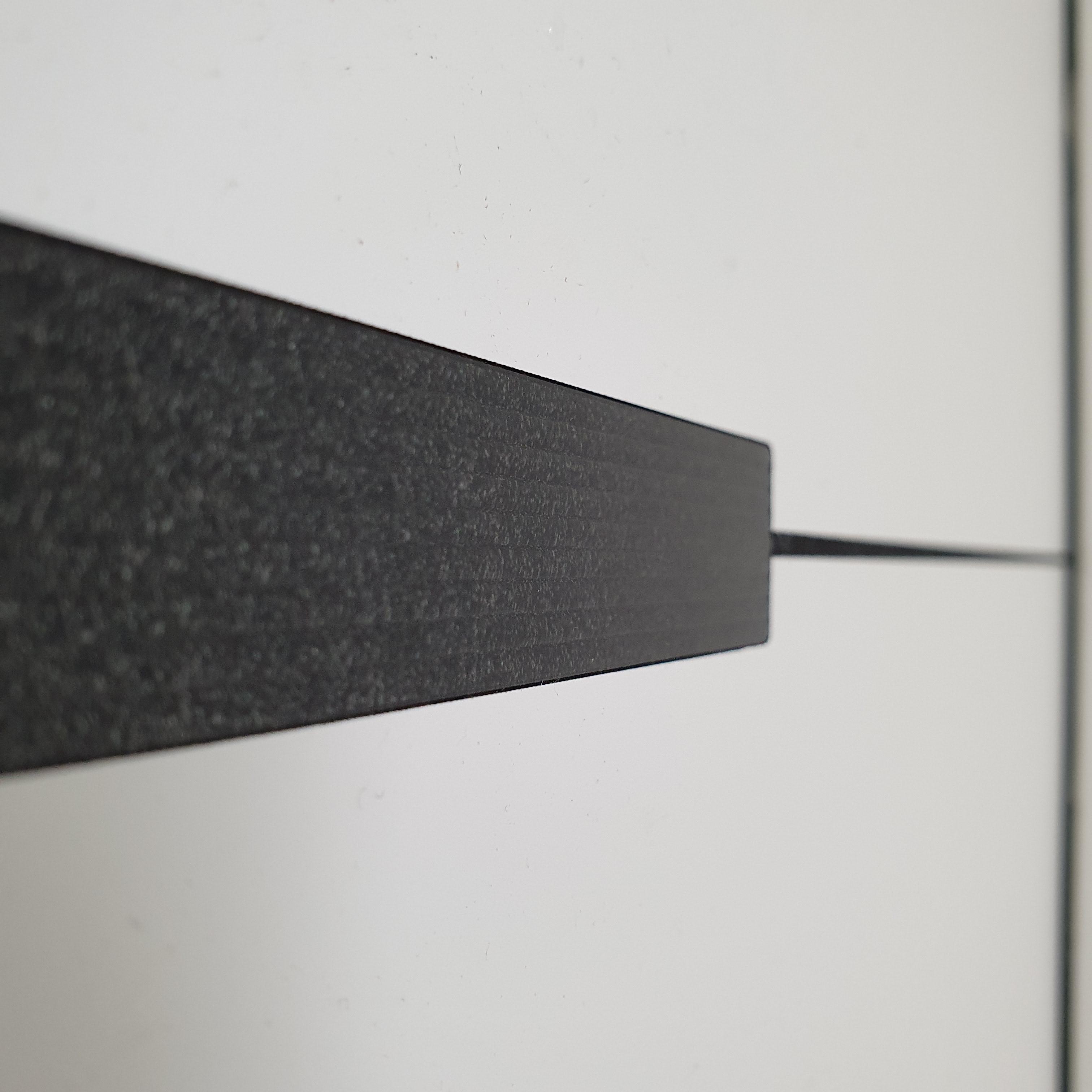 검은색 홈이 퍼티에 의해 거의 평평하게 마감된 모습입니다.