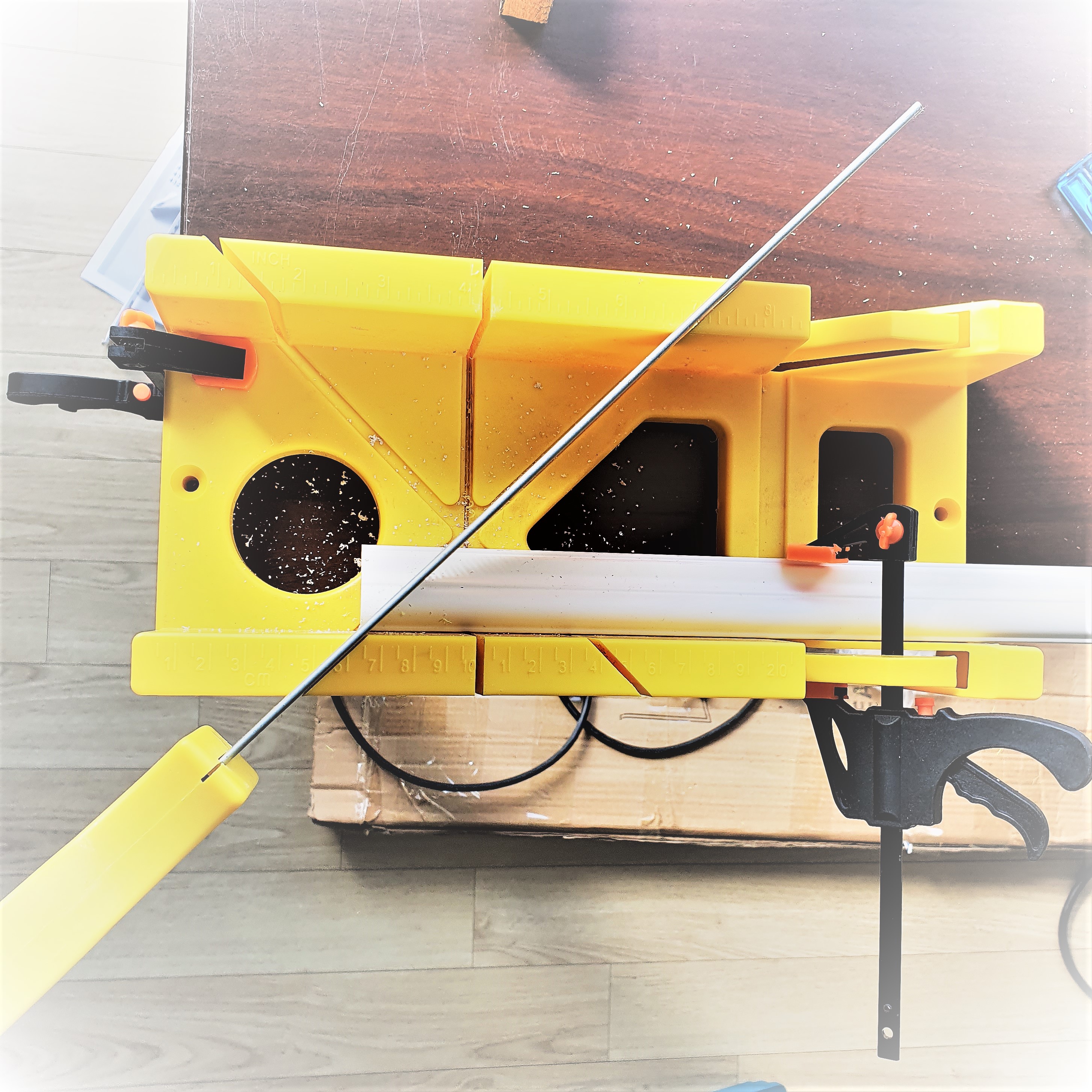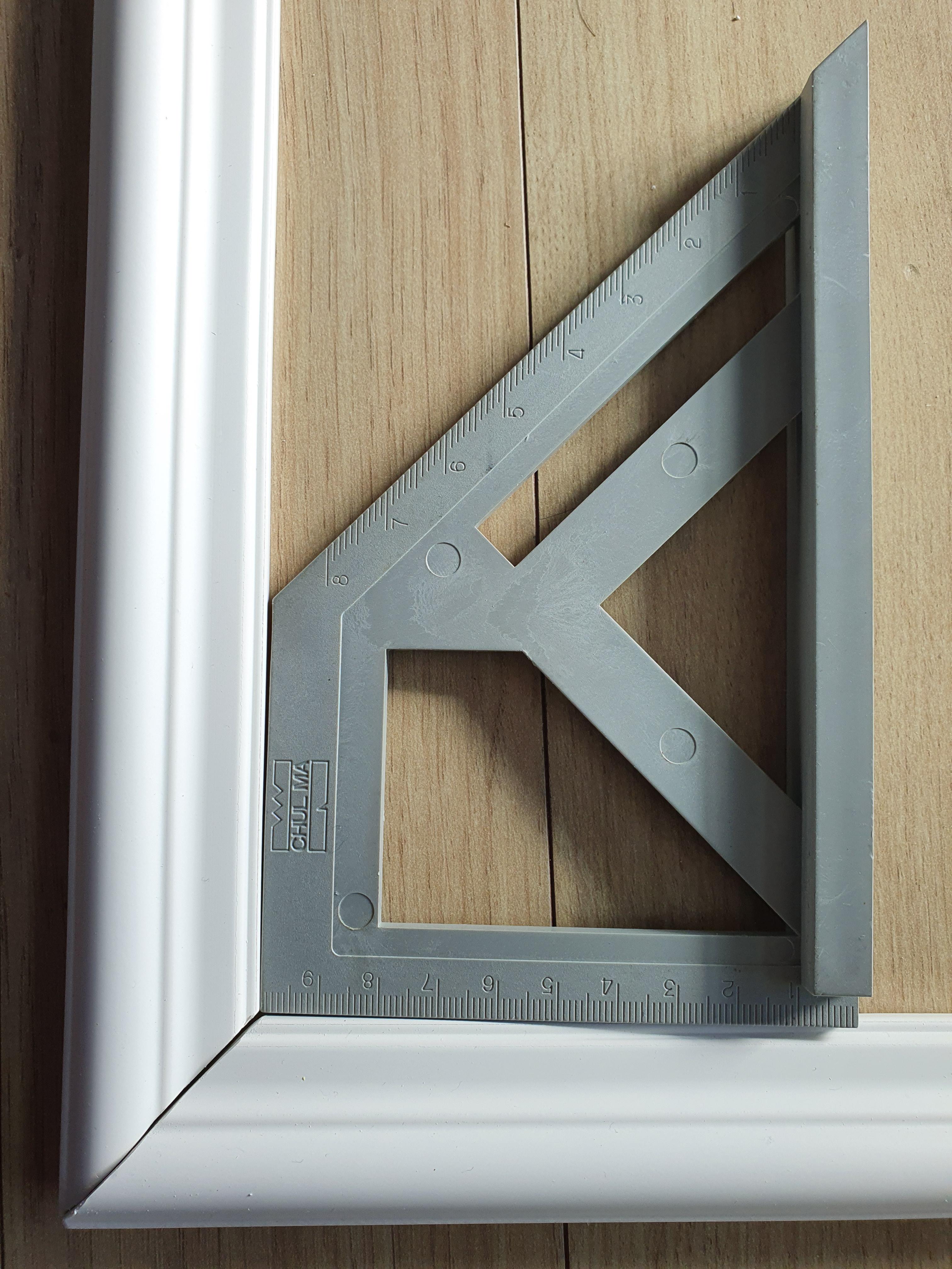 회전형 자동 톱기계가 없어서 수동으로 몰딩을 절단해야 했습니다.