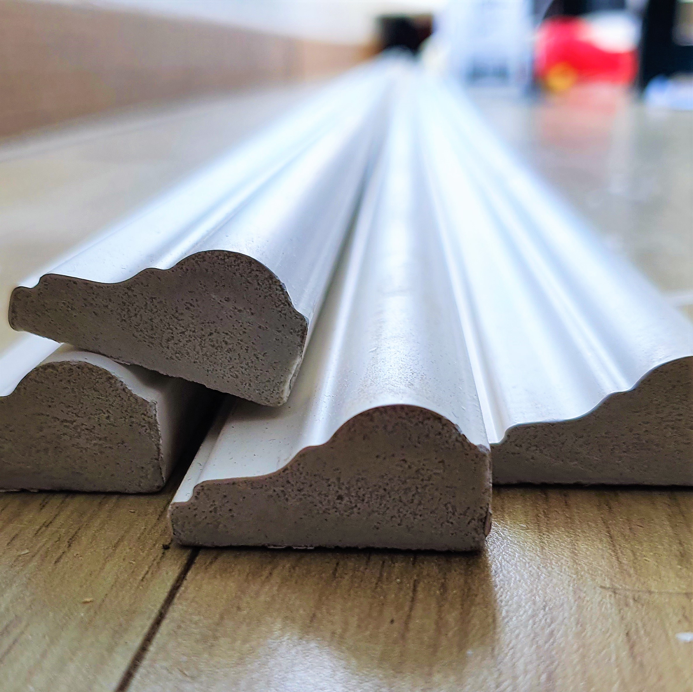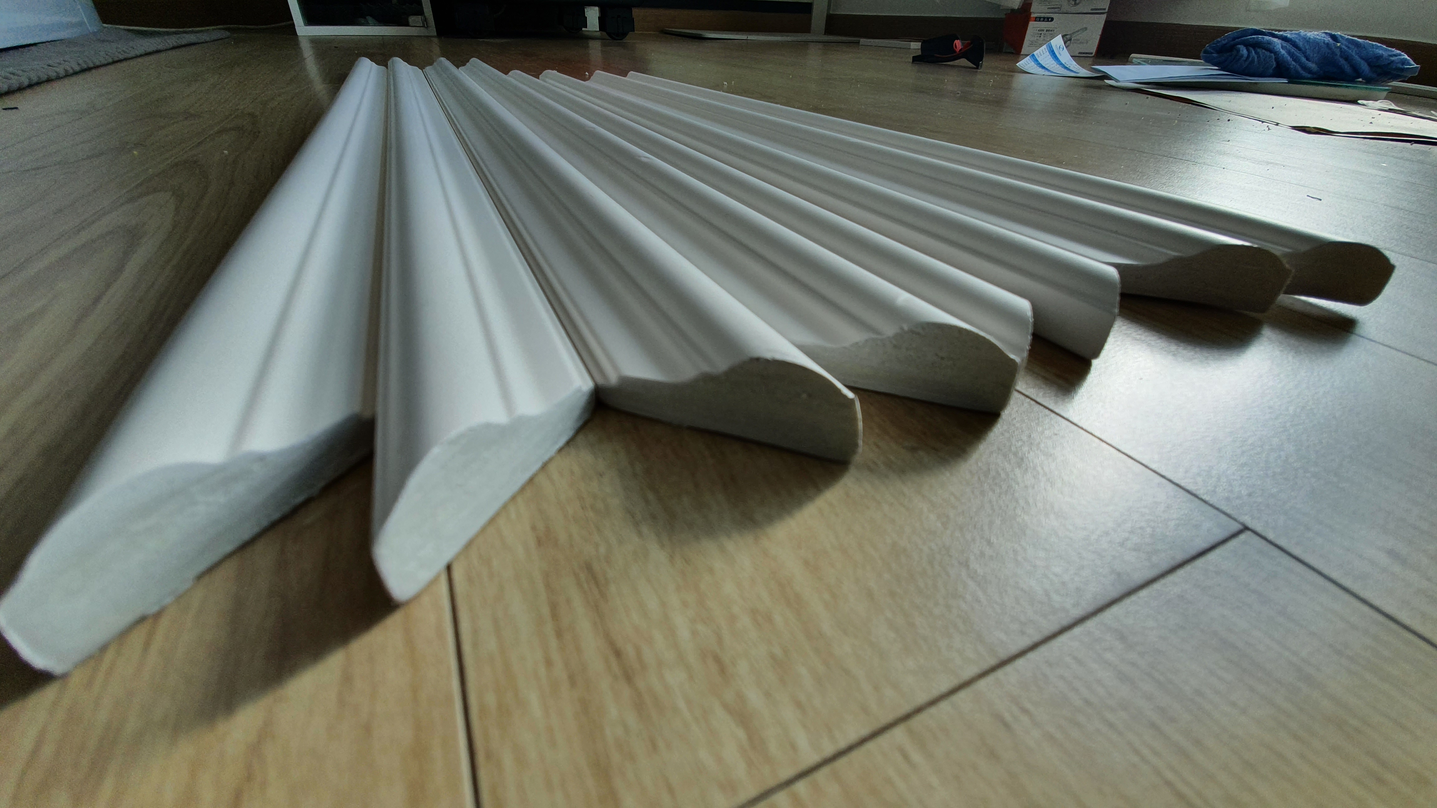 이제, 웨인스코팅용 몰딩재의 재단 작업이 모두 끝났습니다.