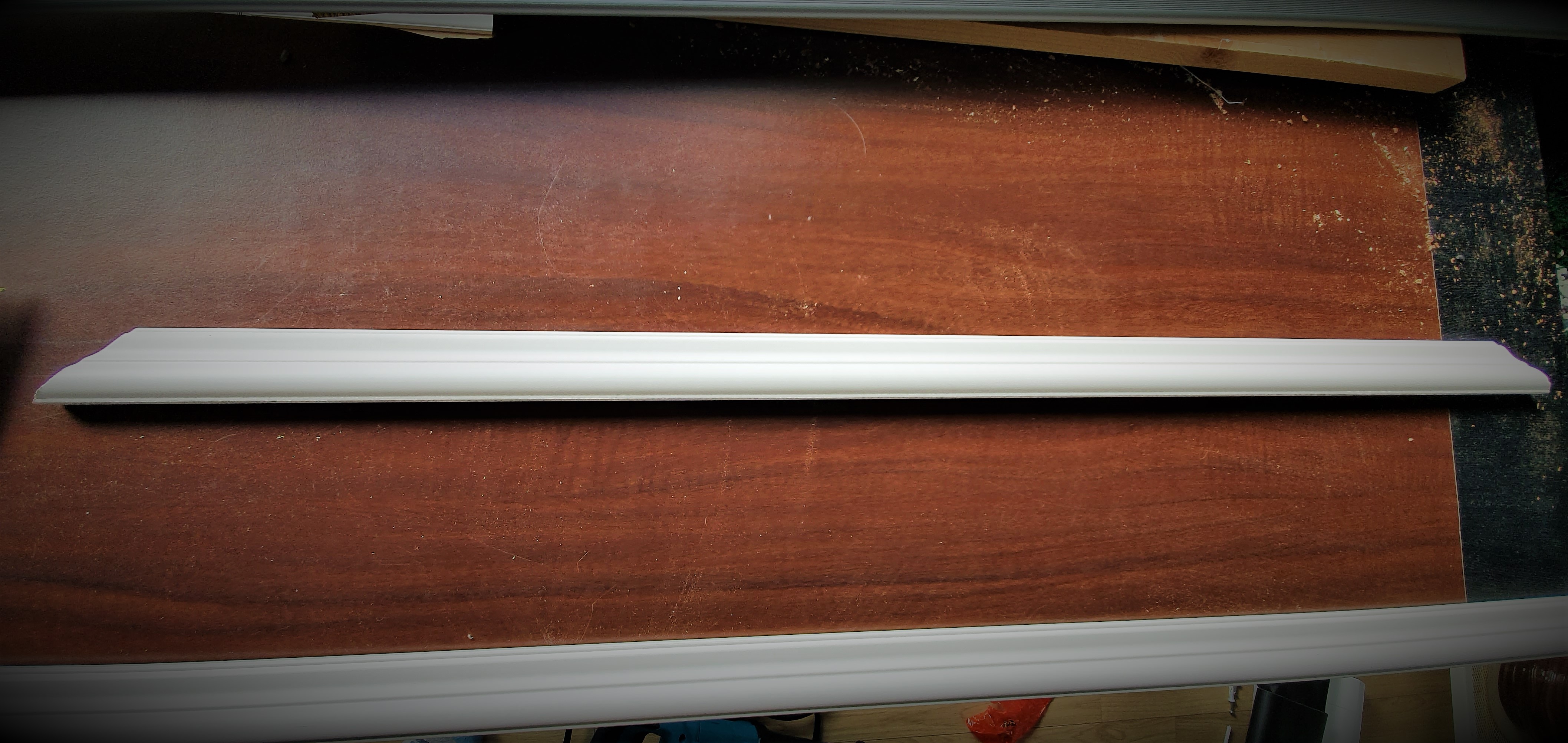 재단한 몰딩을 바닥에 임시로 배치해 봅니다.