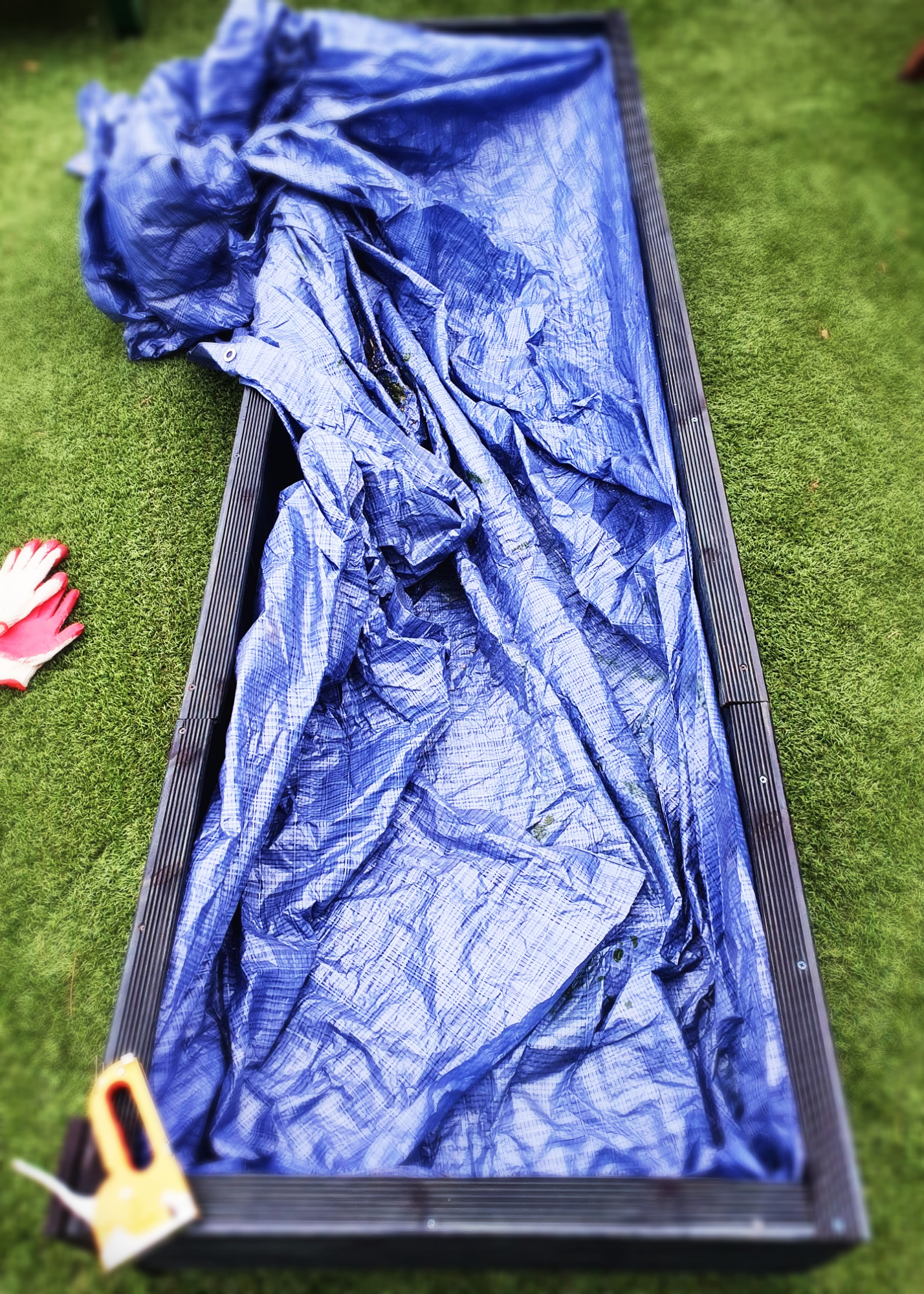 방수포를 플랜트 화분에 모두 씌워준 모습입니다.
