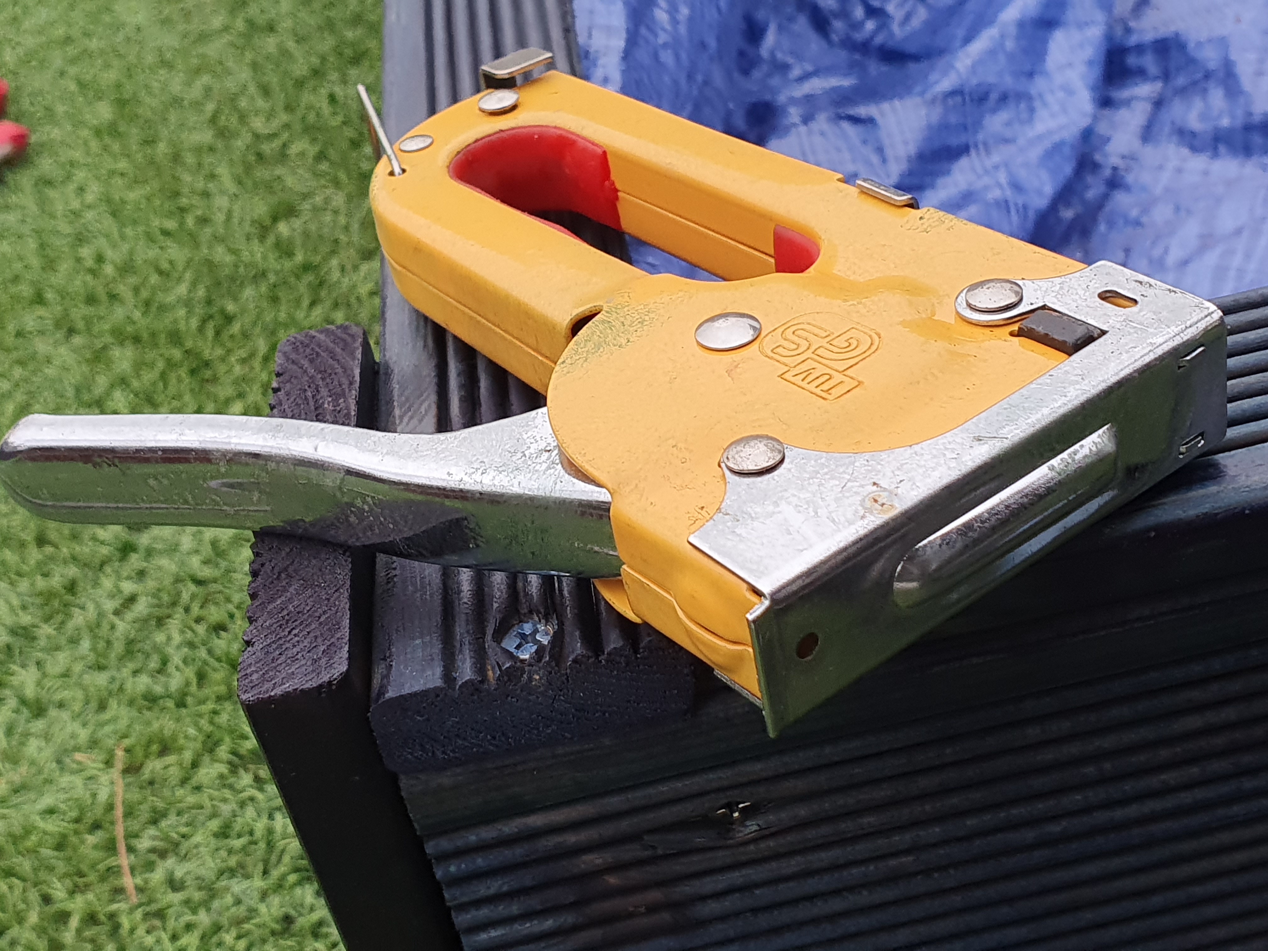 다이* 에서 구입한 저렴한 타카가 방수포를 플랜트 벽면에 고정해 주는데 있어 큰 역할을 해주었습니다.