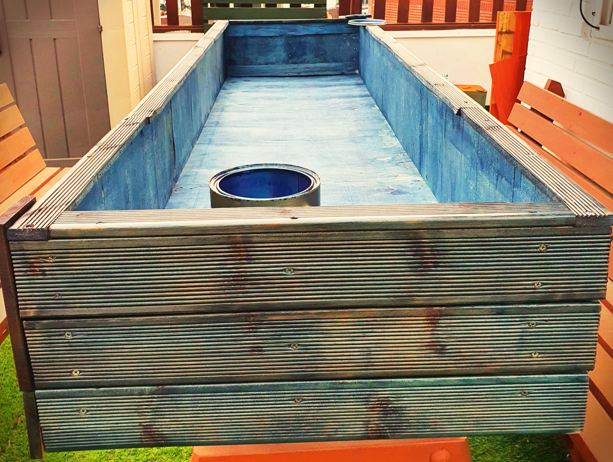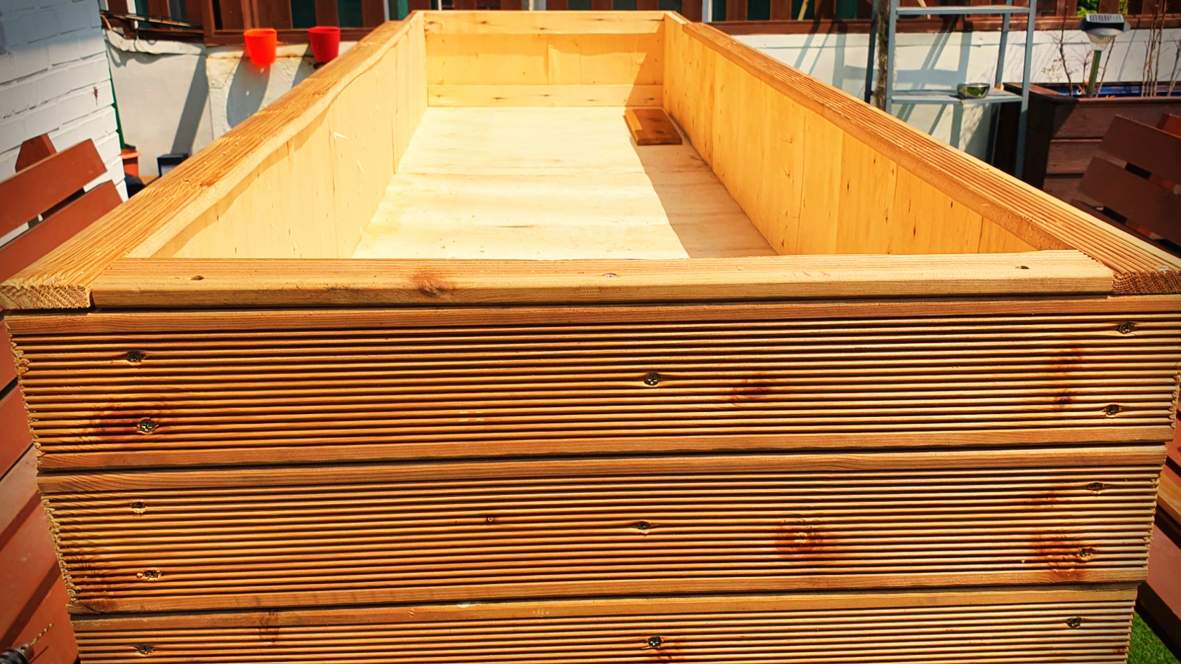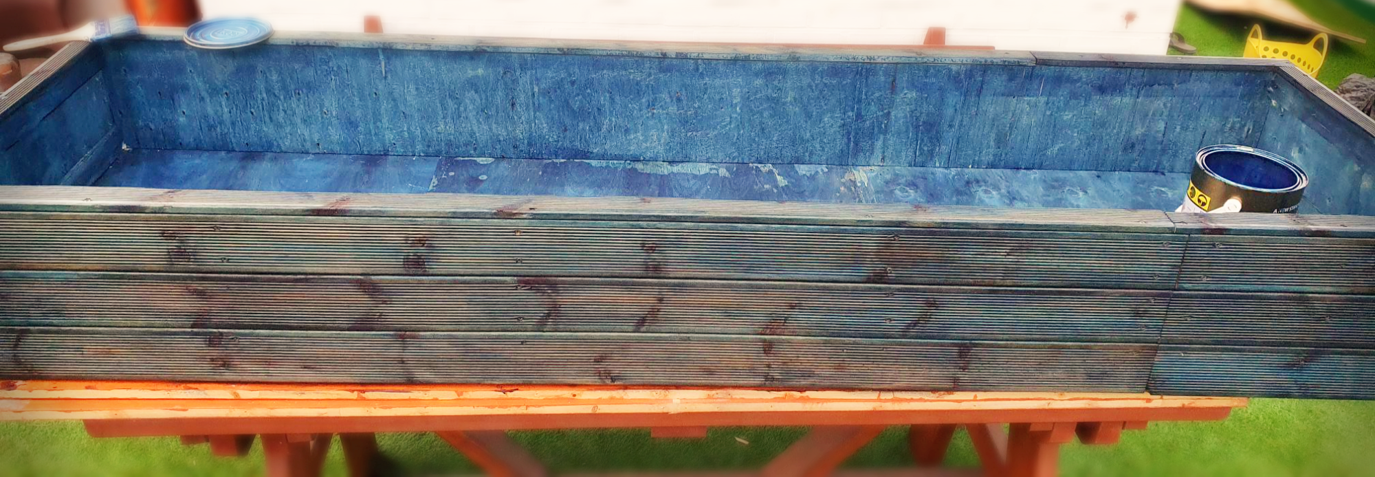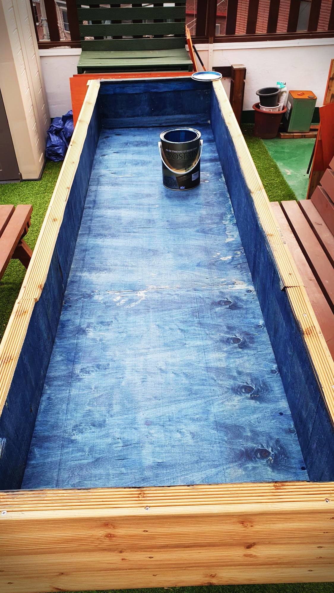 플랜트 화분 상부에도 합판의 모서리 부분으 덮어줄 방부목 데크재를 장착해 줍니다.