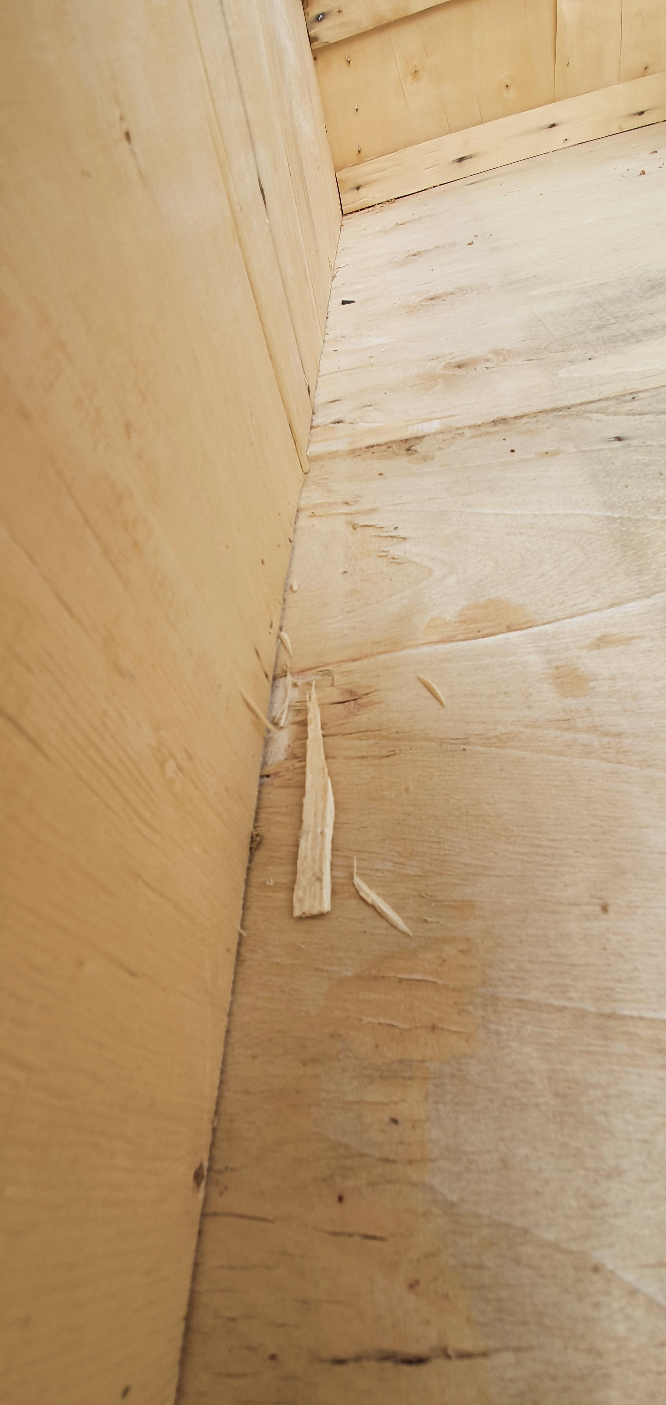 재질이 저렴한 합판 목재라 내구성이 많이 약하고 습기 때문에 목재가 많이 변형될 것으로 보입니다.
