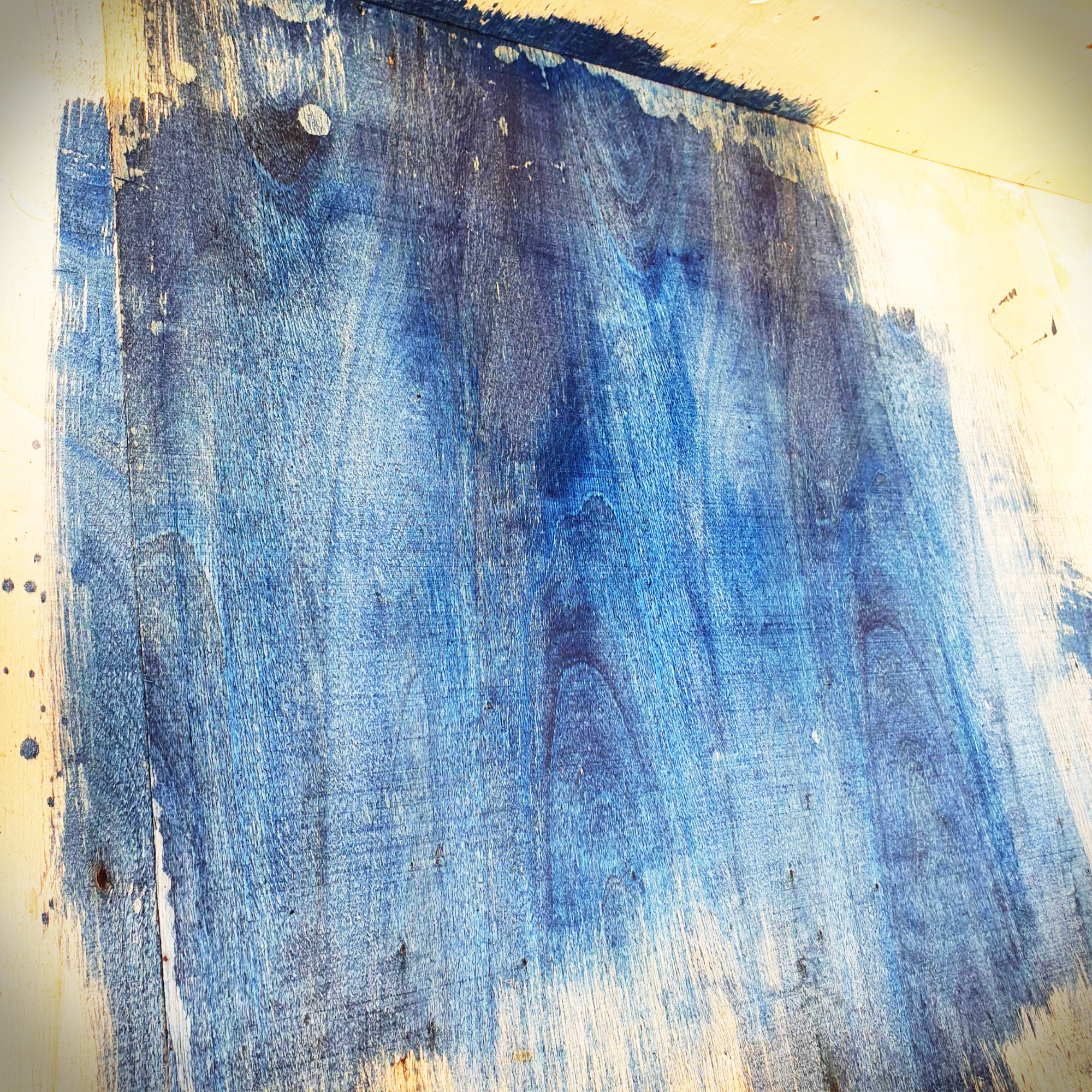 바닥면에 1차로 오일스테인 도색을 진행한 모습입니다.