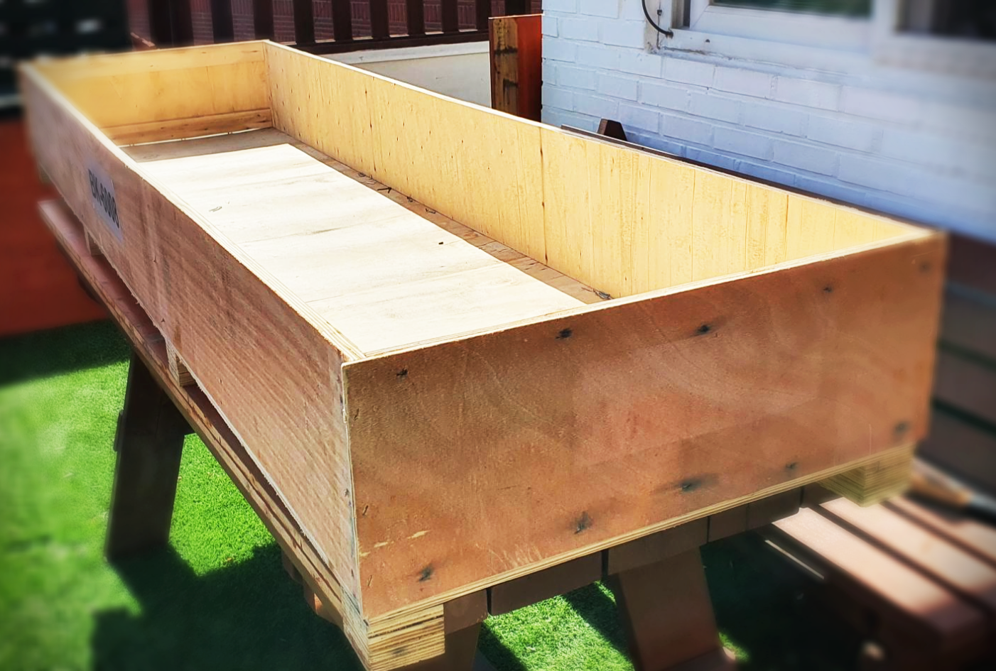 데크재를 합판 상자 외부에 부착하기 시작합니다.