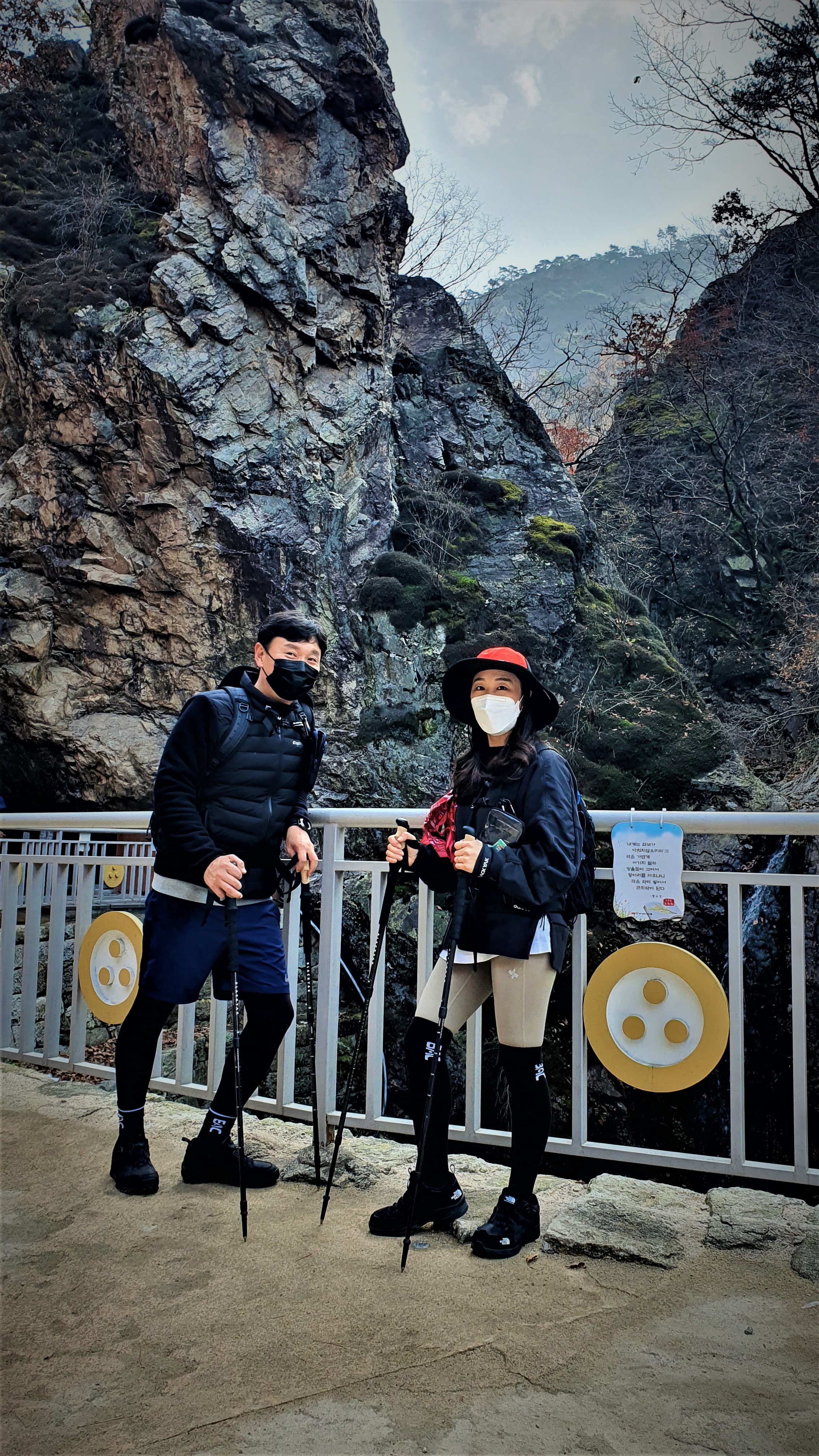 청량폭포부터 계단이 시작되길래 와이프와 함께 무릎보호대를 착용했다.