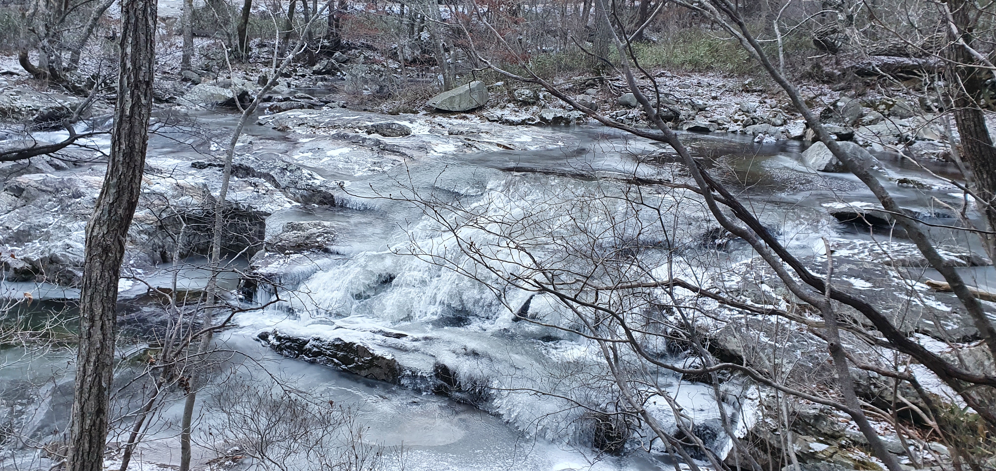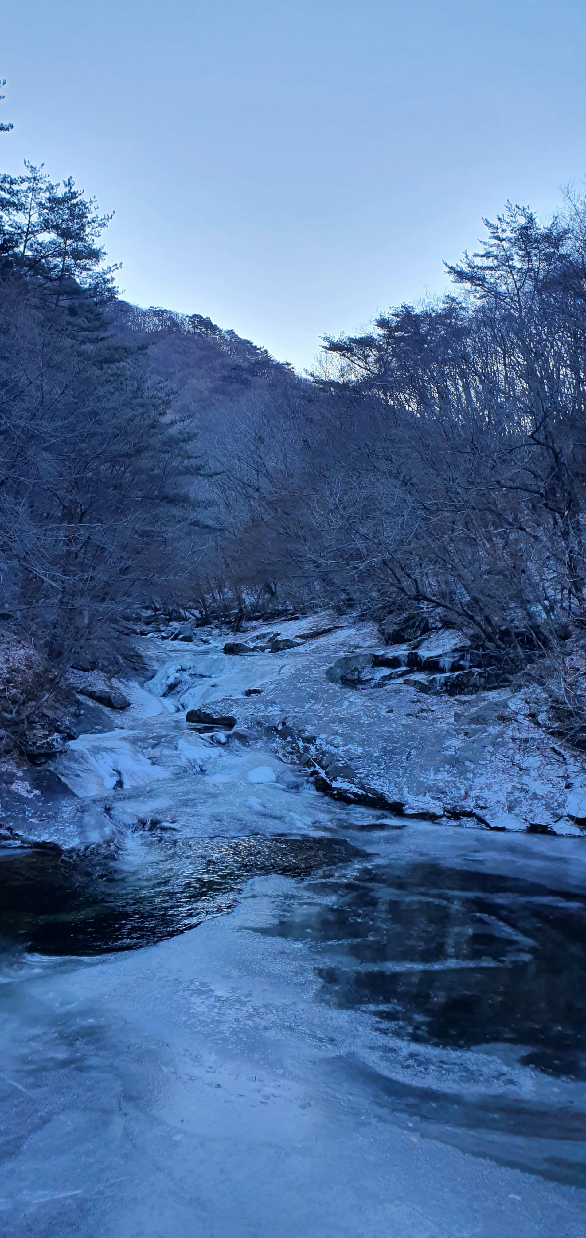 계곡이 모두 얼었음에도 얼음 밑으로 아직 흐르는 계곡 물소리가 힘차다.