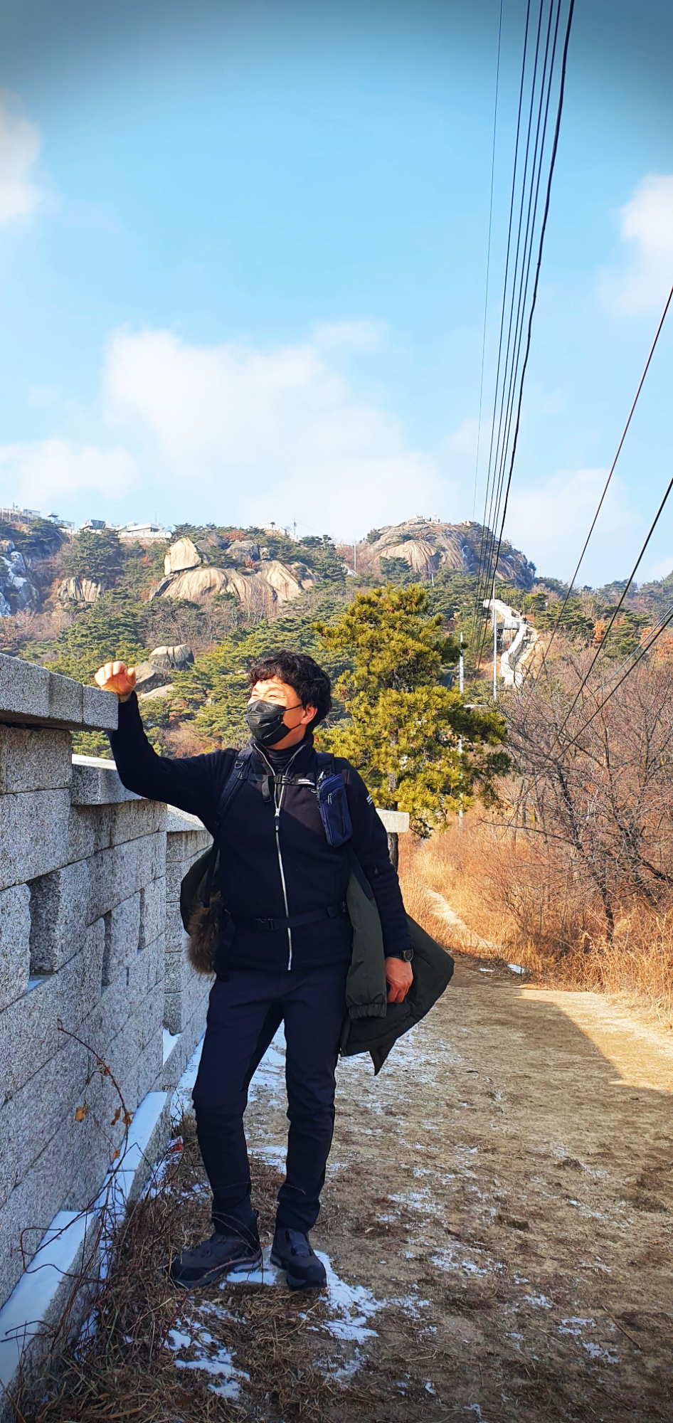 인왕산 정상에서 남긴 유일한 도시뷰를 배경으로 찍은 사진인가 보다.