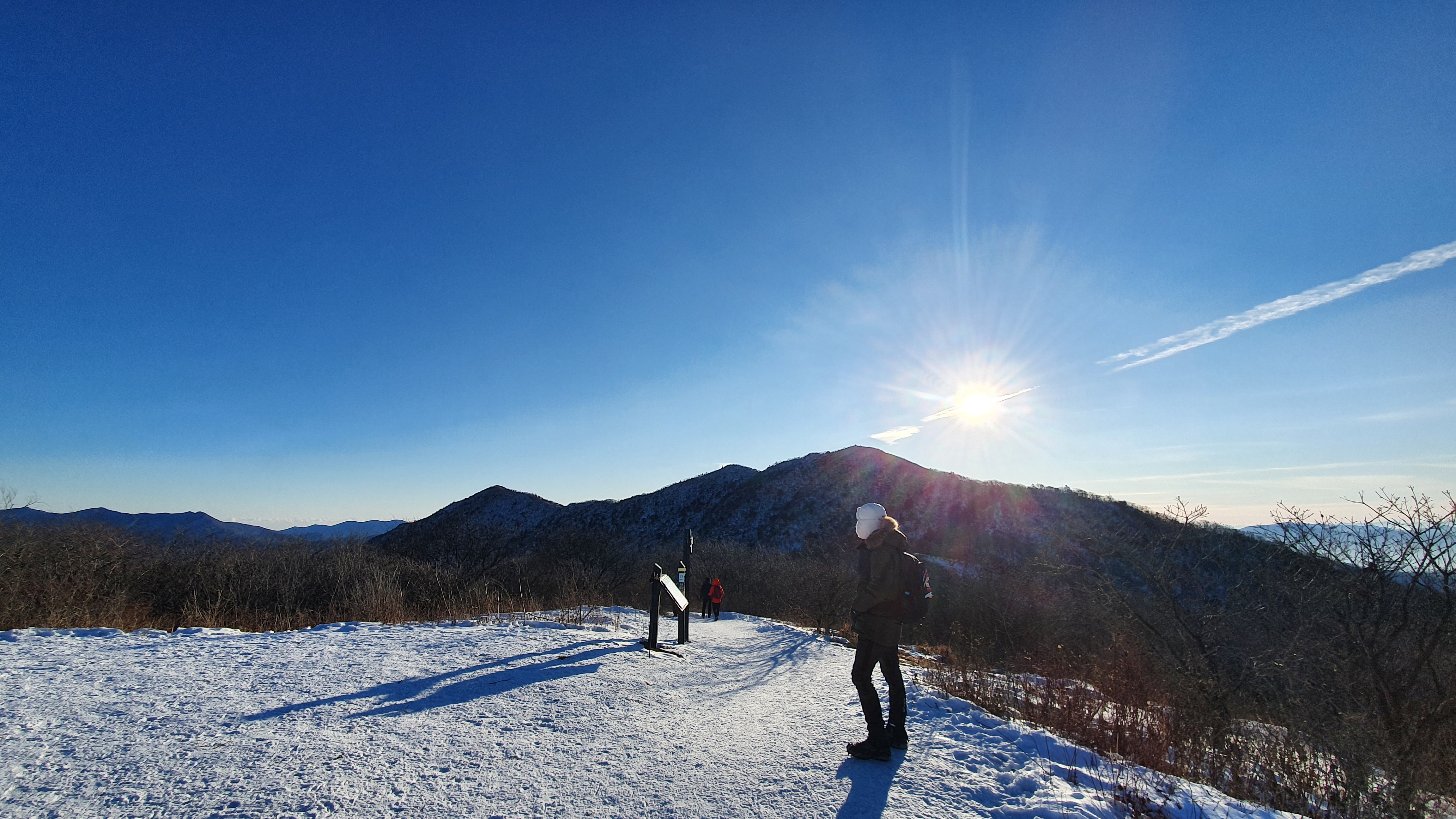아이젠으로 눈을 밟는 사각 소리가 제법 멀리까지 들릴 정도여서 한참 뒤에 보이지 않은 등산객들의 아이젠 발자국 소리까지 잡힌다.
