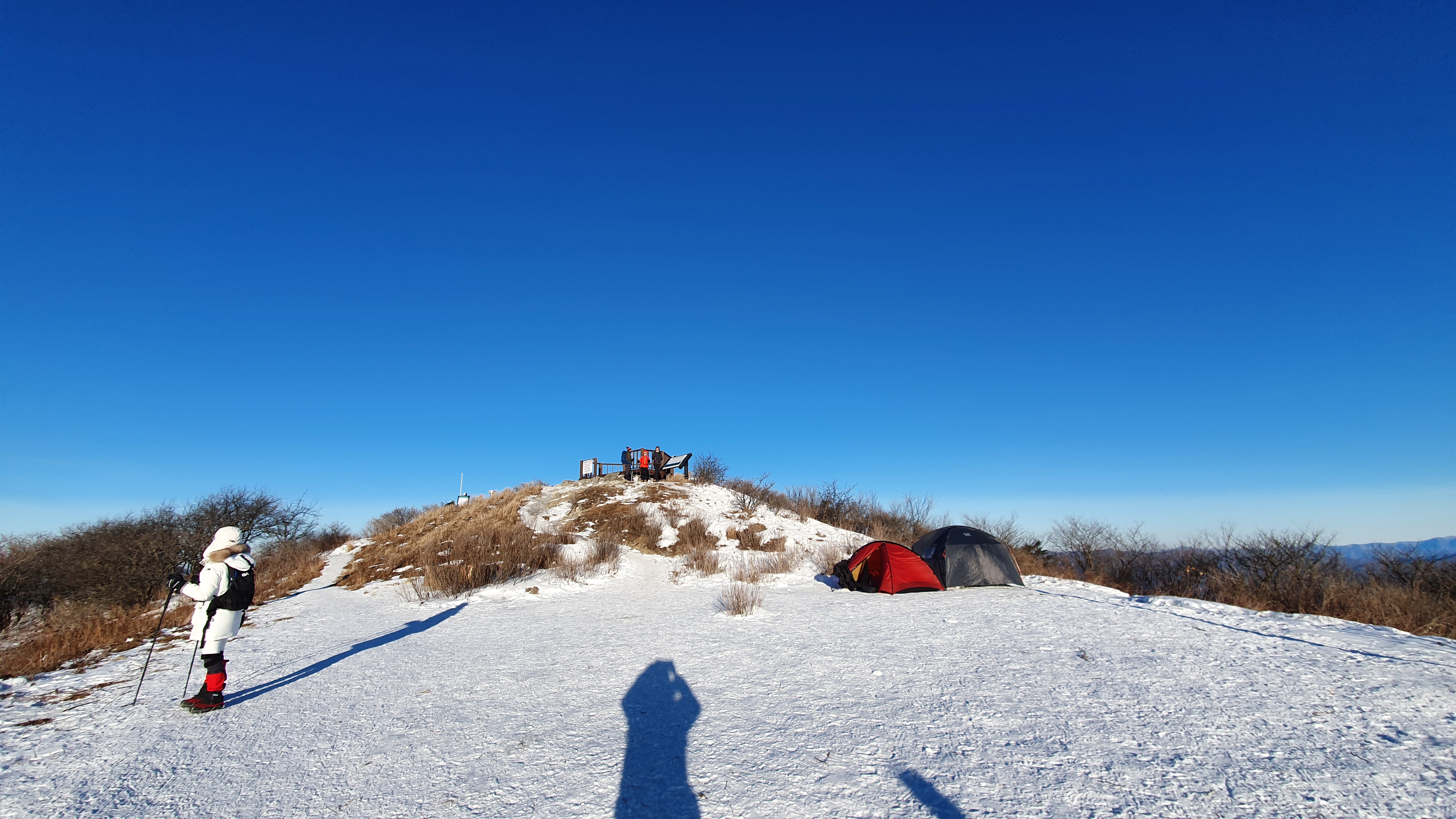 이 추운 날에 여기서 하룻밤을 지새운 것으로 보이는 텐트, 백패킹족~ 정말 존경스럽다.