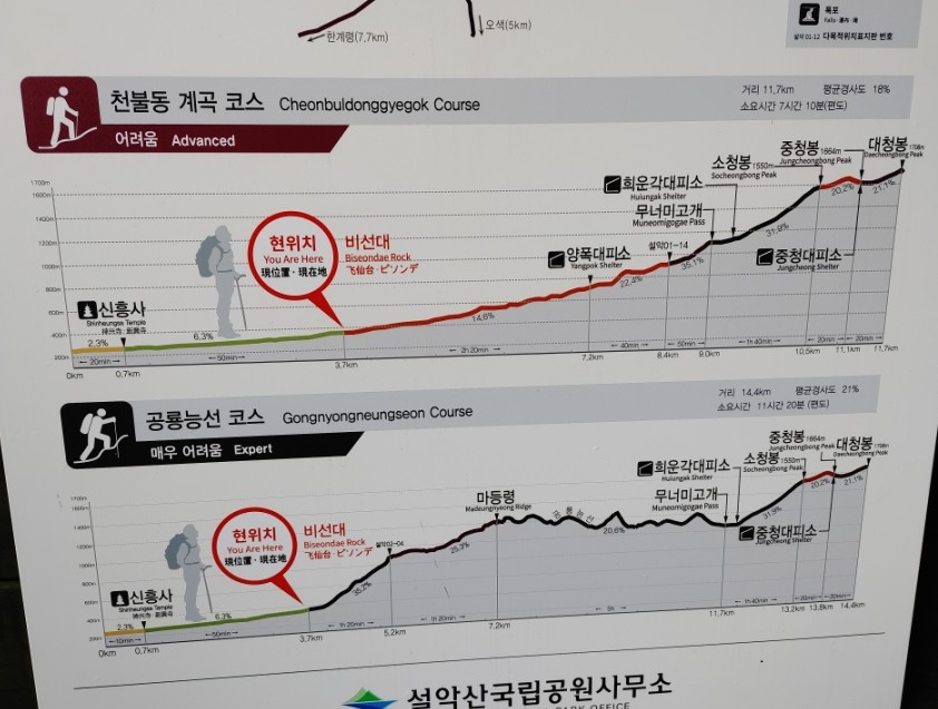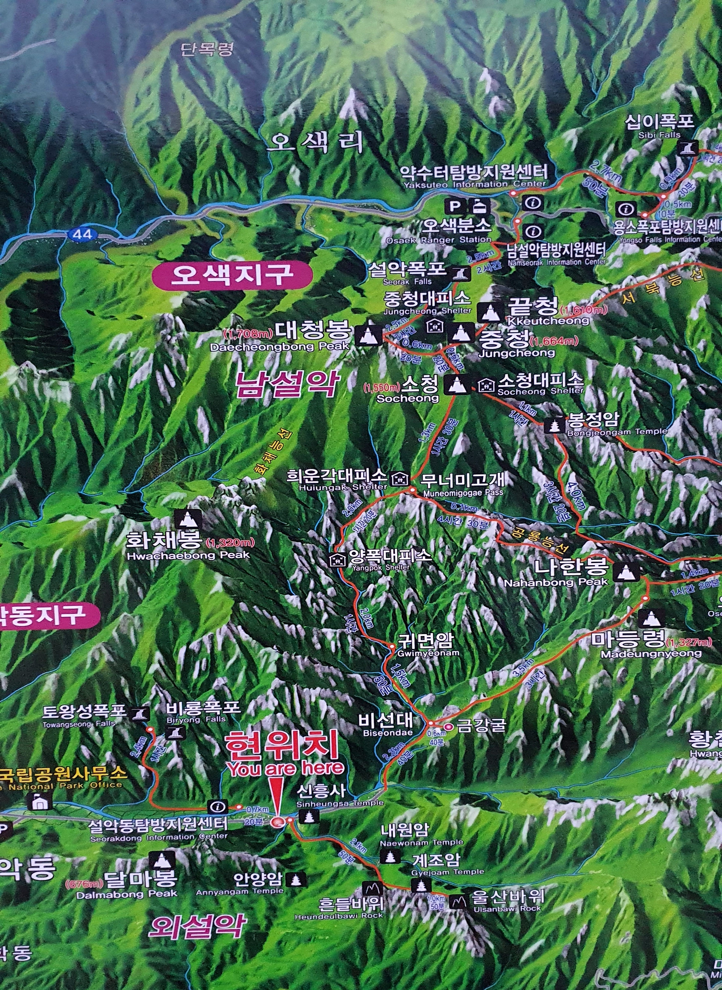 설악산 등산 코스 종합 안내도를 분석하면서 그제서야 울산바위 코스와 대청봉으로 가는 길은 완전히 다르다는 것을 알게 된다.