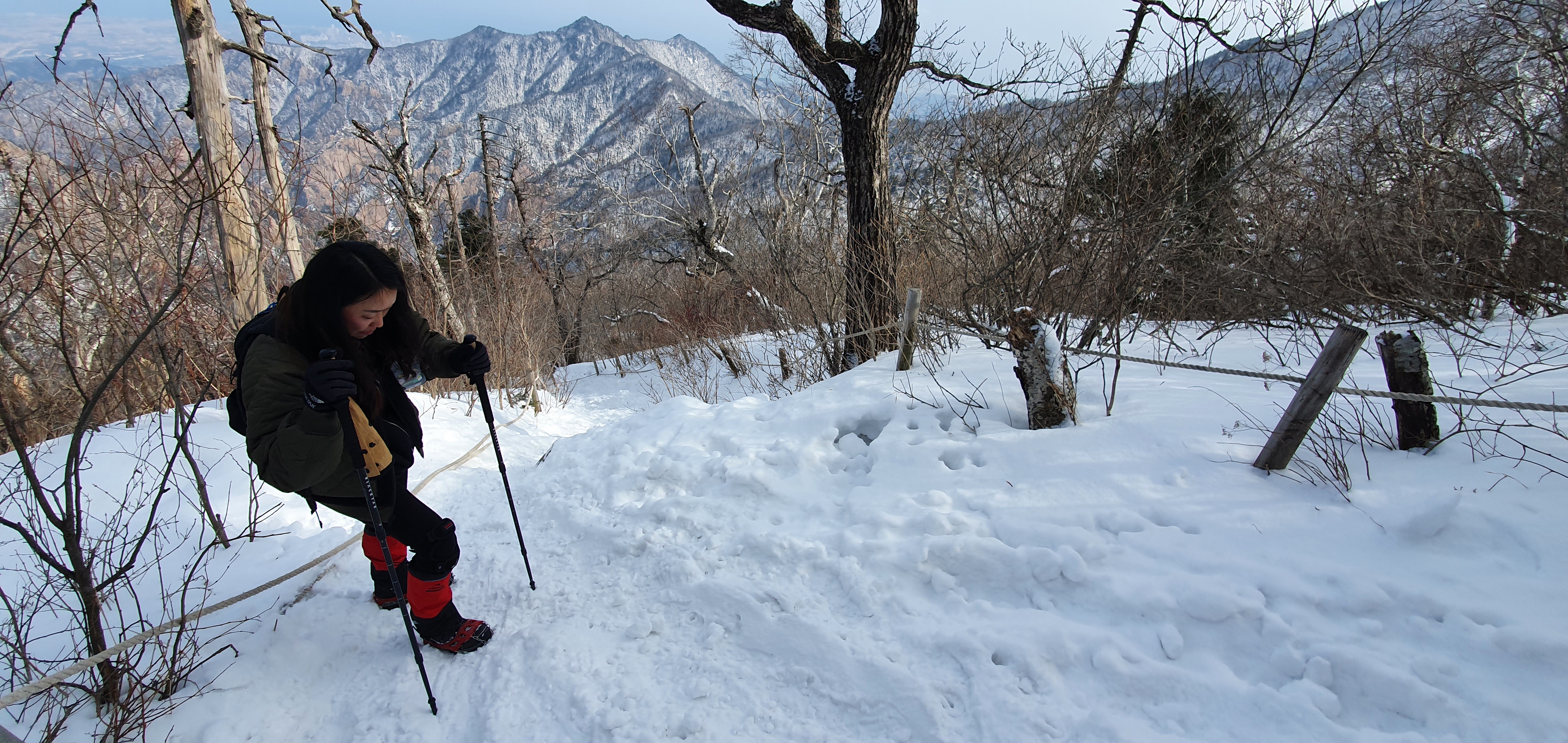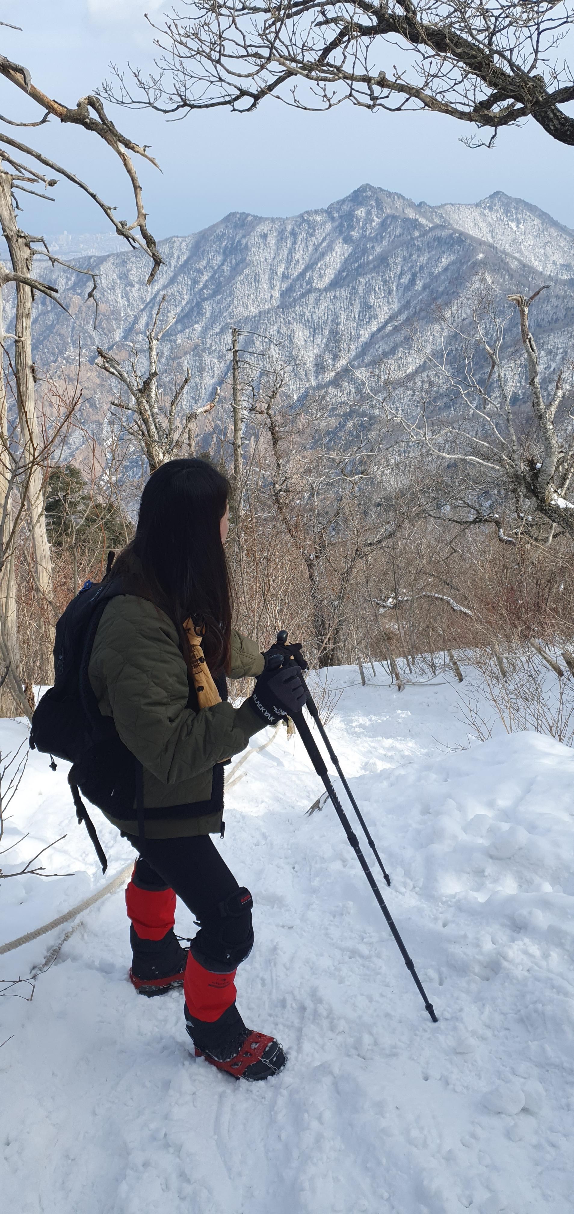 눈이 많이 쌓여 있는 데다가 경사도가 다른 산들에 비해서 상당히 높은 편이었고 어느새부턴가 말없이 내 뒤를 따라오던 집사람의 숨소리가 고르지 못하고 안색이 창백해 보이기 시작한다.