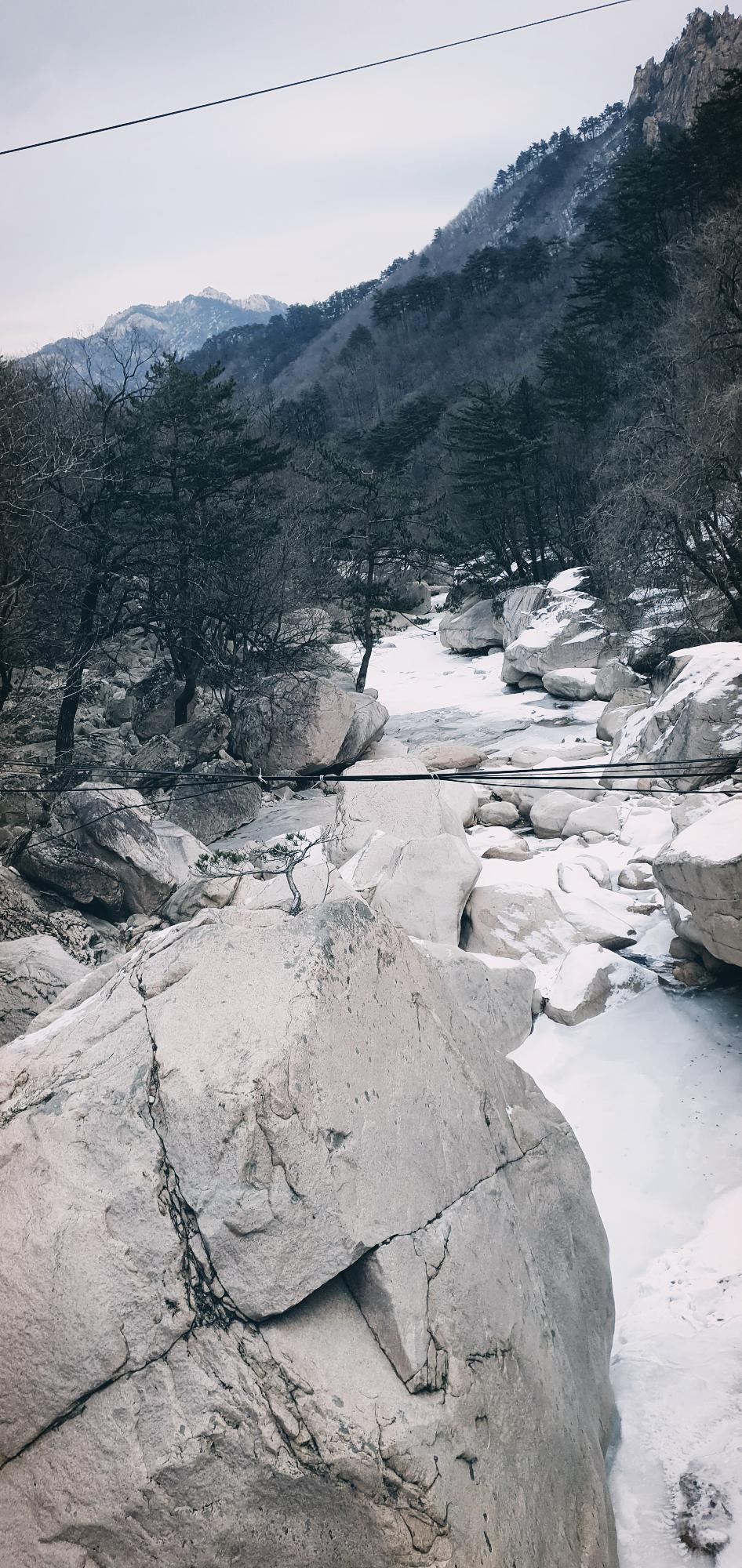 절경이 아름답기는 했지만 겨울이라 얼어붙은 계곡이 허전하고 쓸쓸함이 느껴진다.