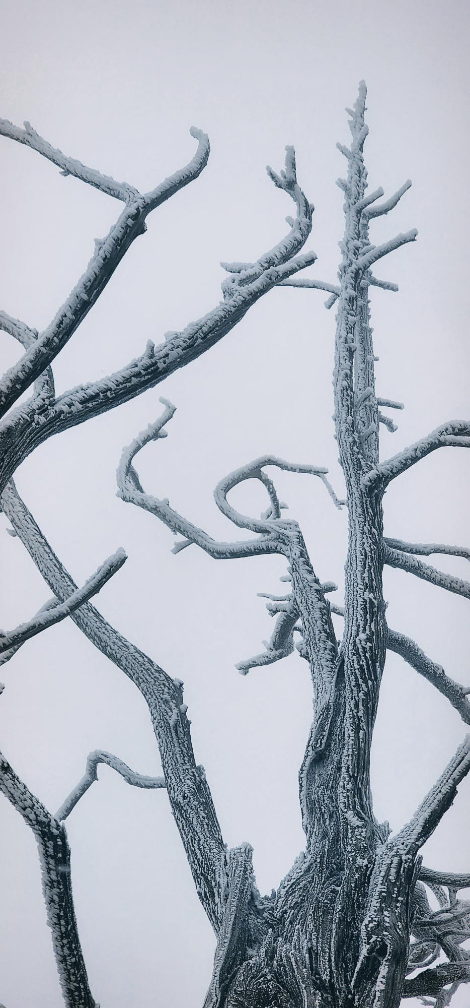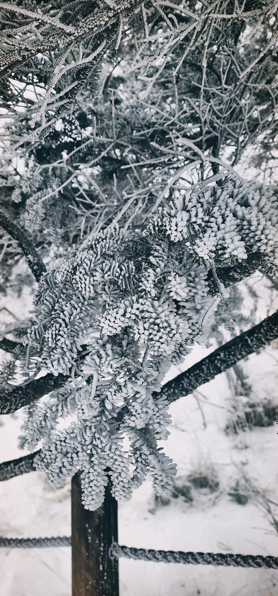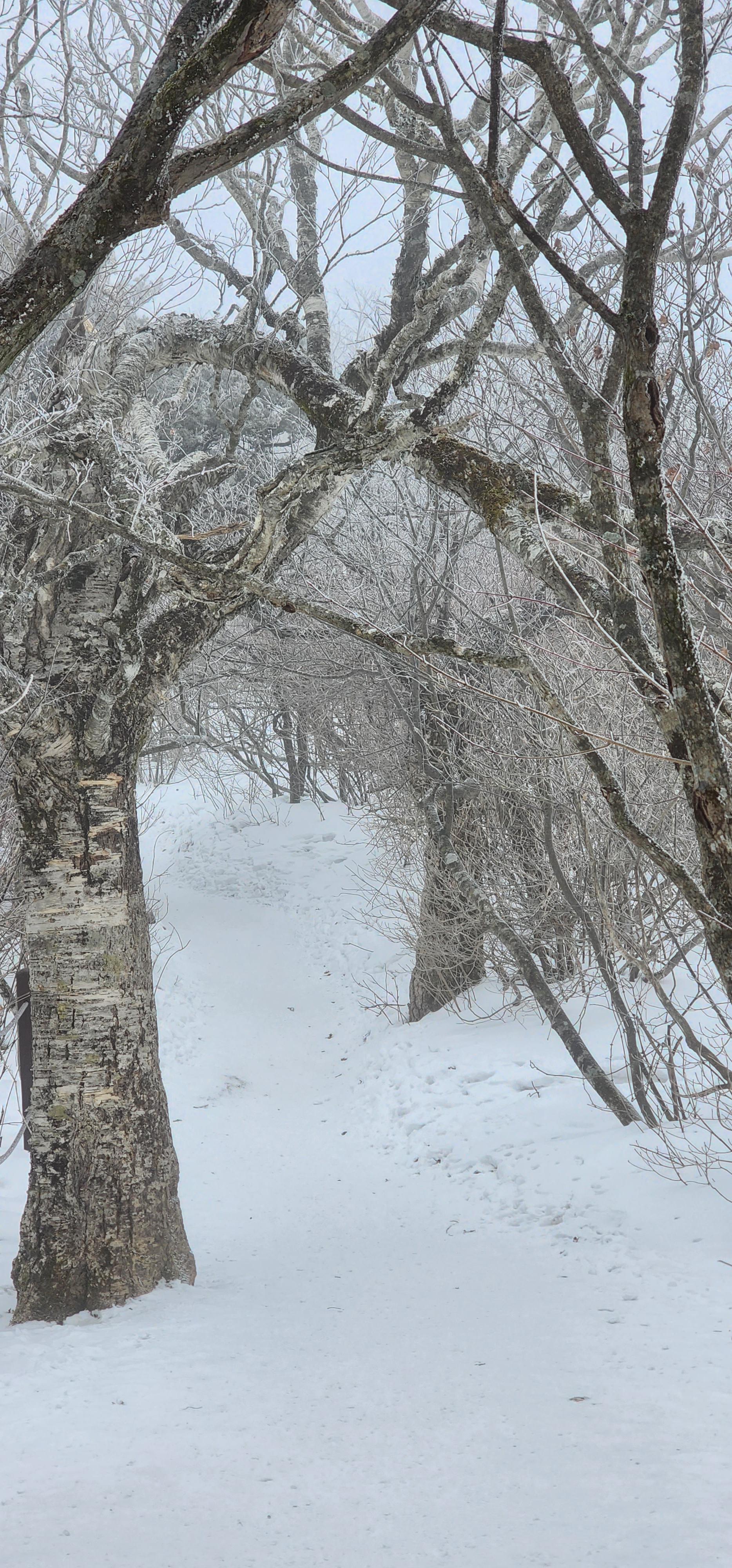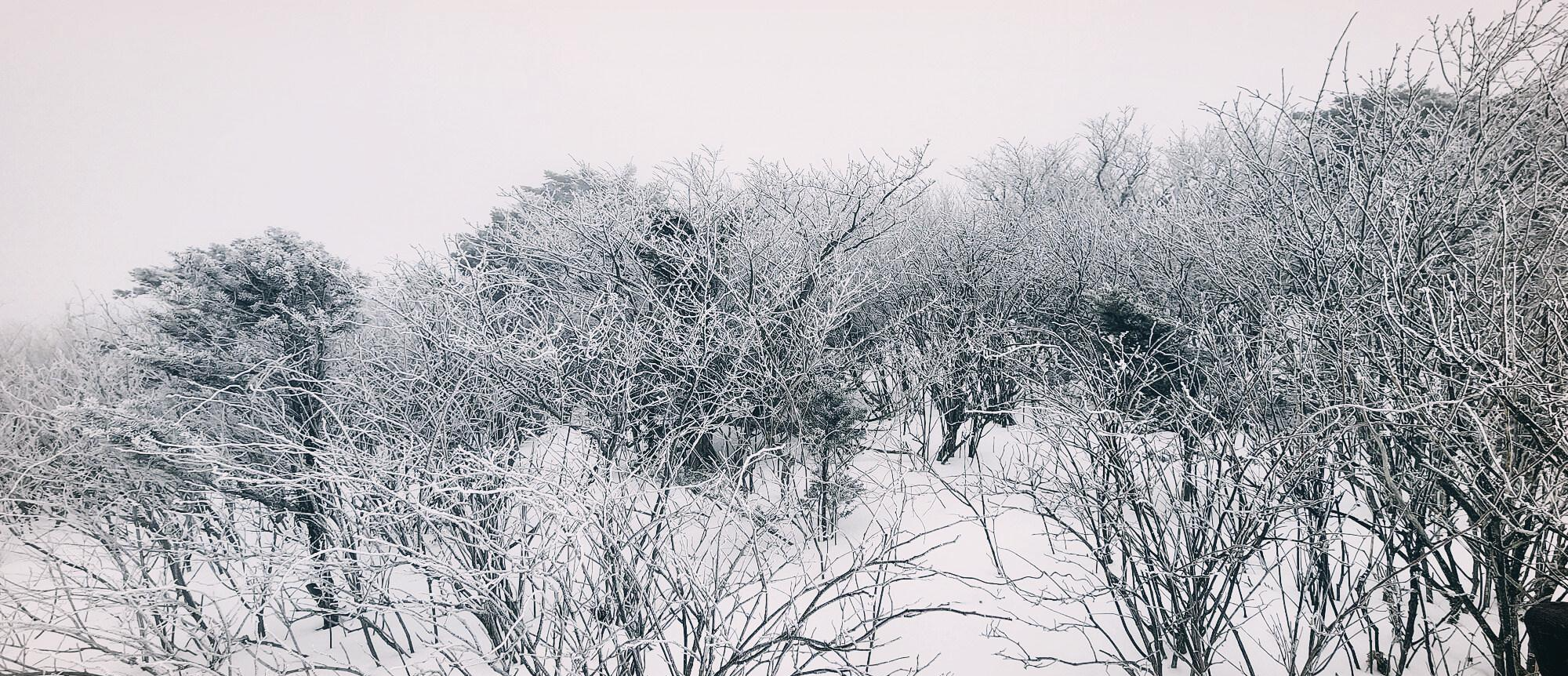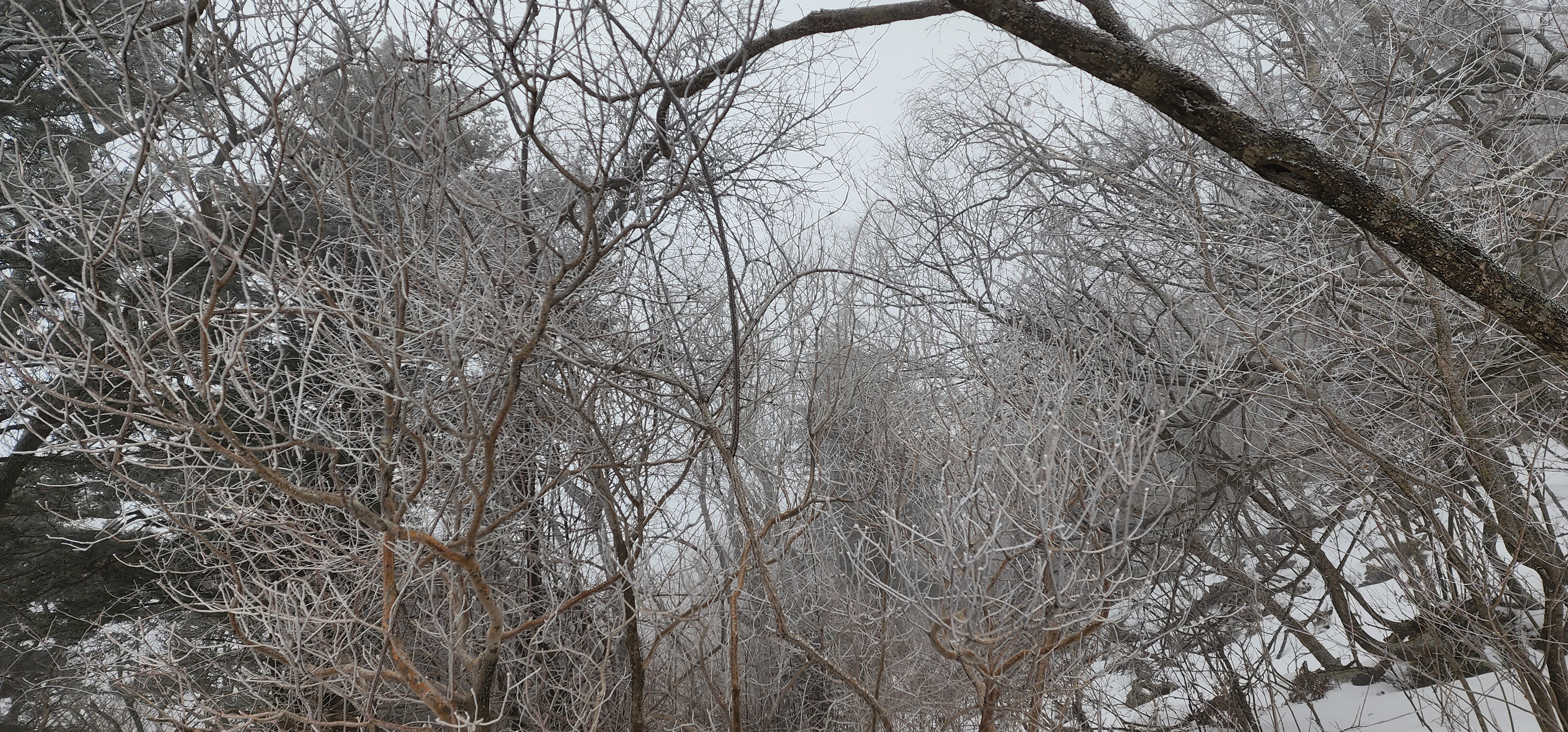중턱 즈음에 오르니 상고대가 핀 나무들이 보이기 시작한다.
