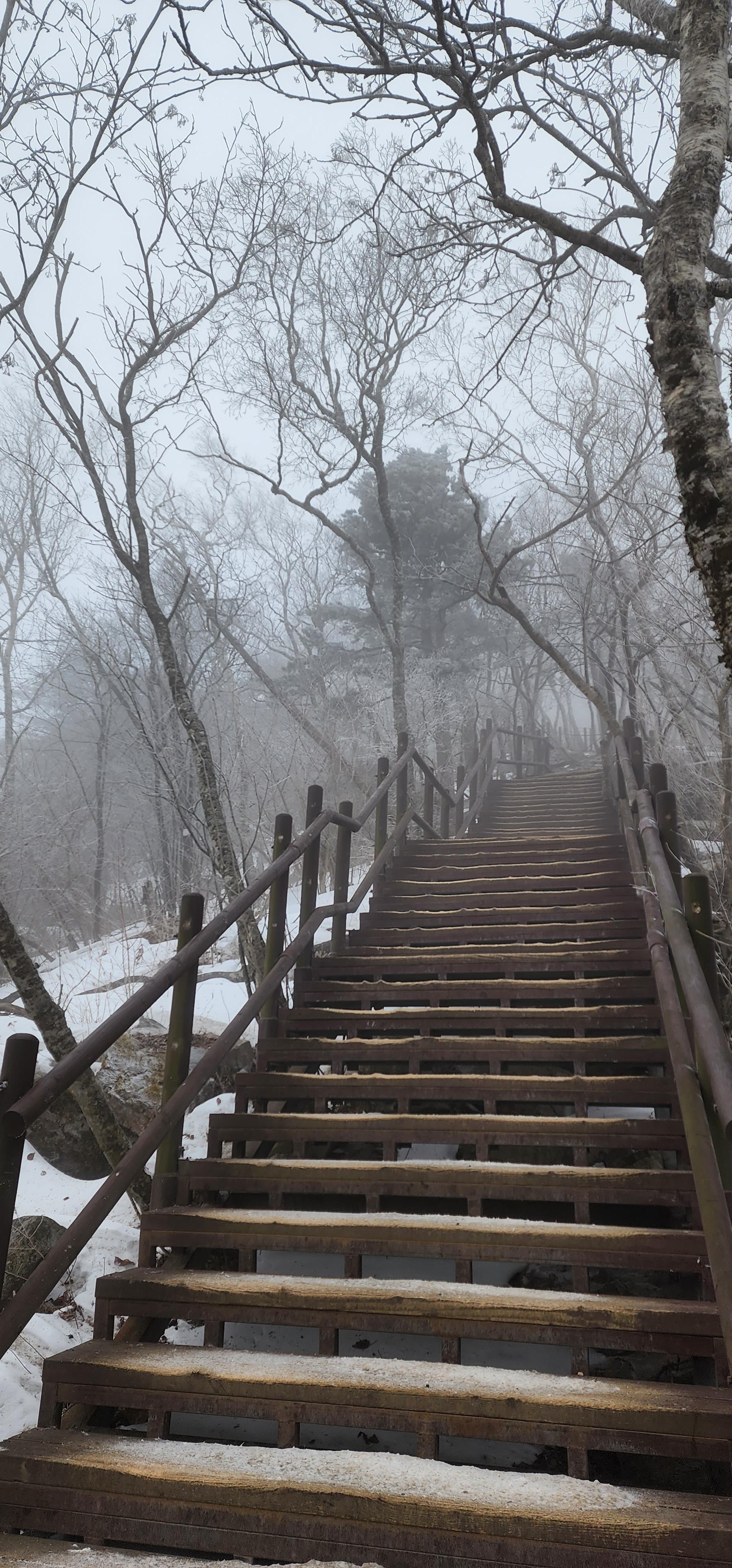올라갈수록 세상이 점점 하얀색으로 뒤덮이고 있다.
