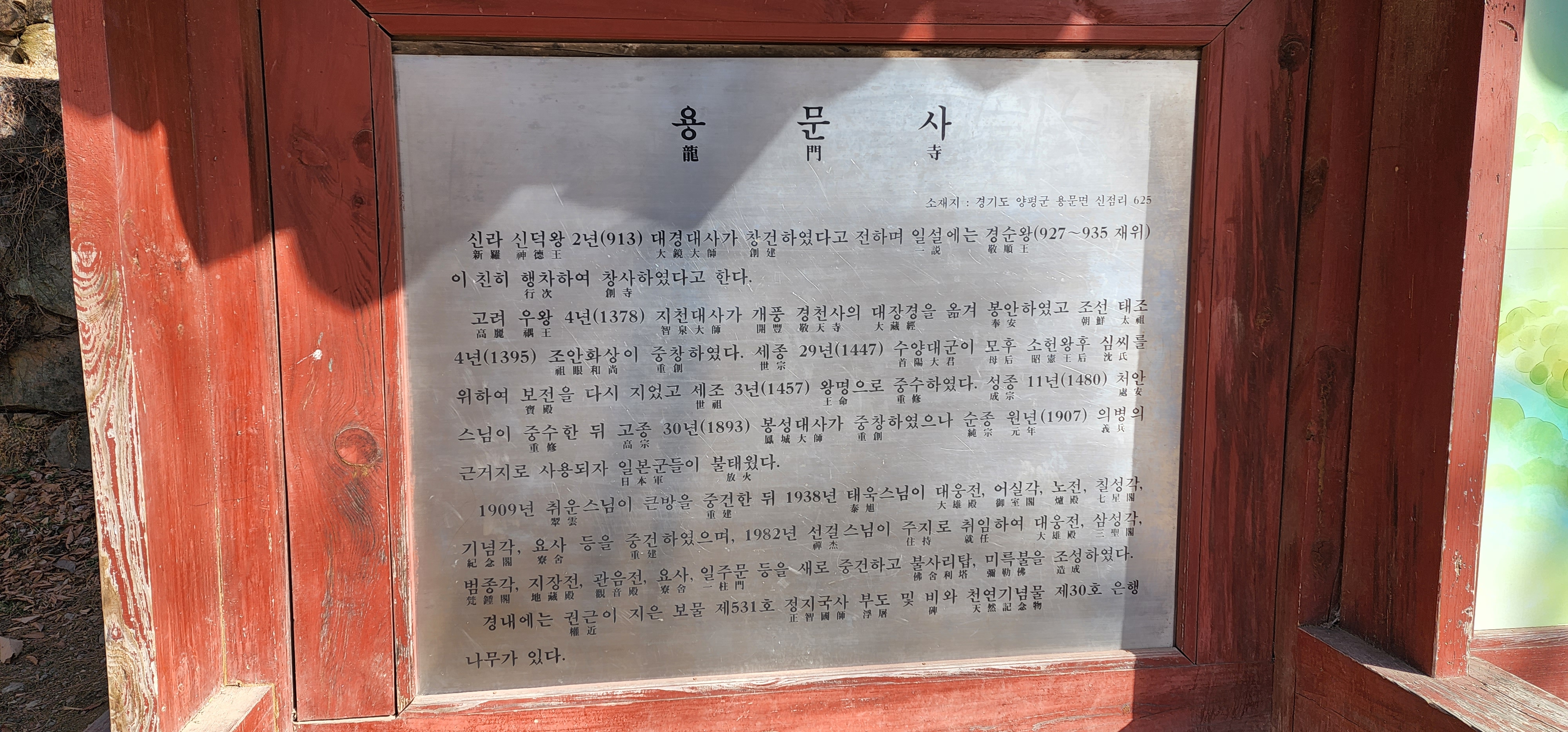 용문산 초입에 항일 운동 관련 기념비들을 볼 수 있다.