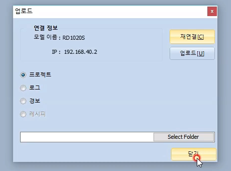 이더넷 통신으로 프로젝트 파일을 업로드