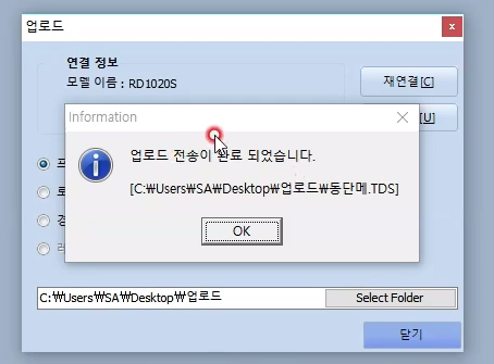 전송메뉴에서 데이터 업로드(Upload)를 실행합니다.
