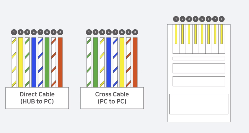 다이렉트 케이블의 색깔 순서는 주황띠-주황-녹띠-청-청띠-녹-갈띠-갈색.