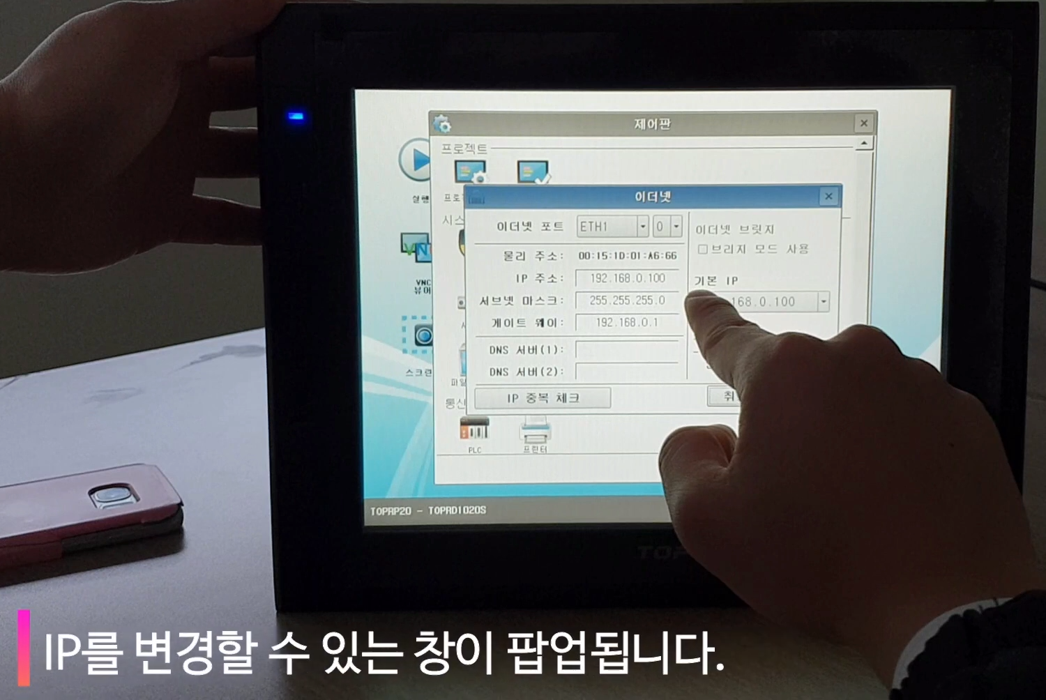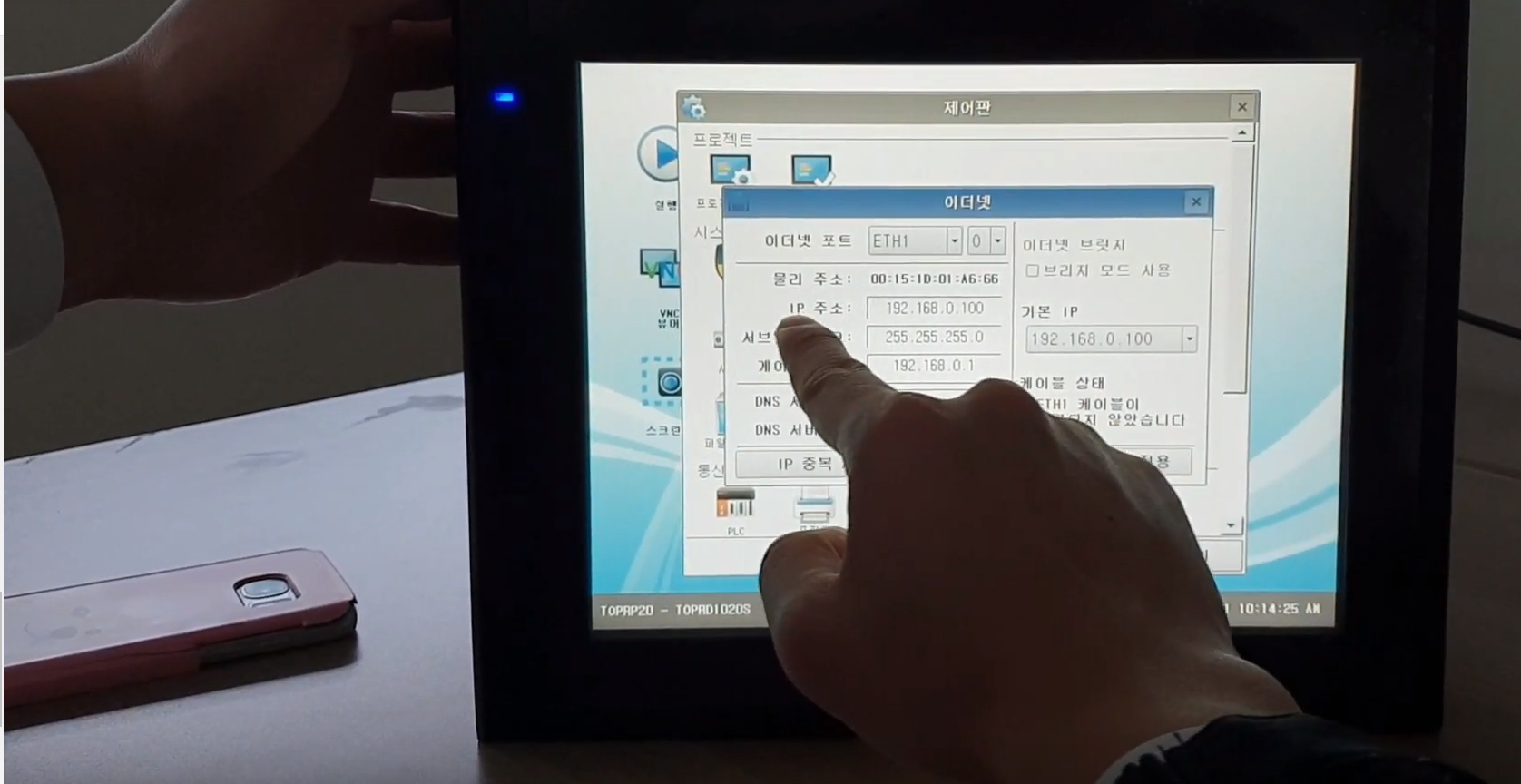 터치(TOP)의 IP가 192.168.1.100 인 경우,