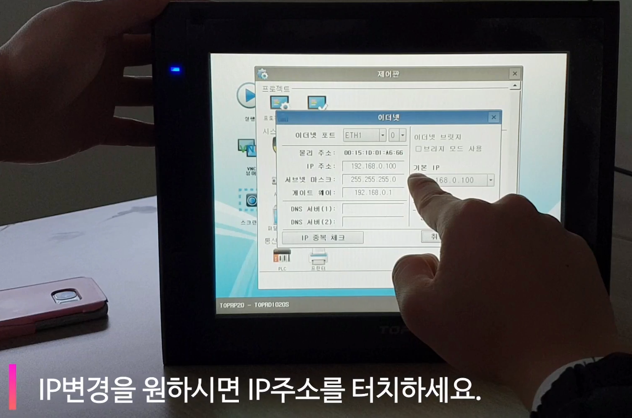 6) IP변경을 원하시면 IP주소를 터치하세요