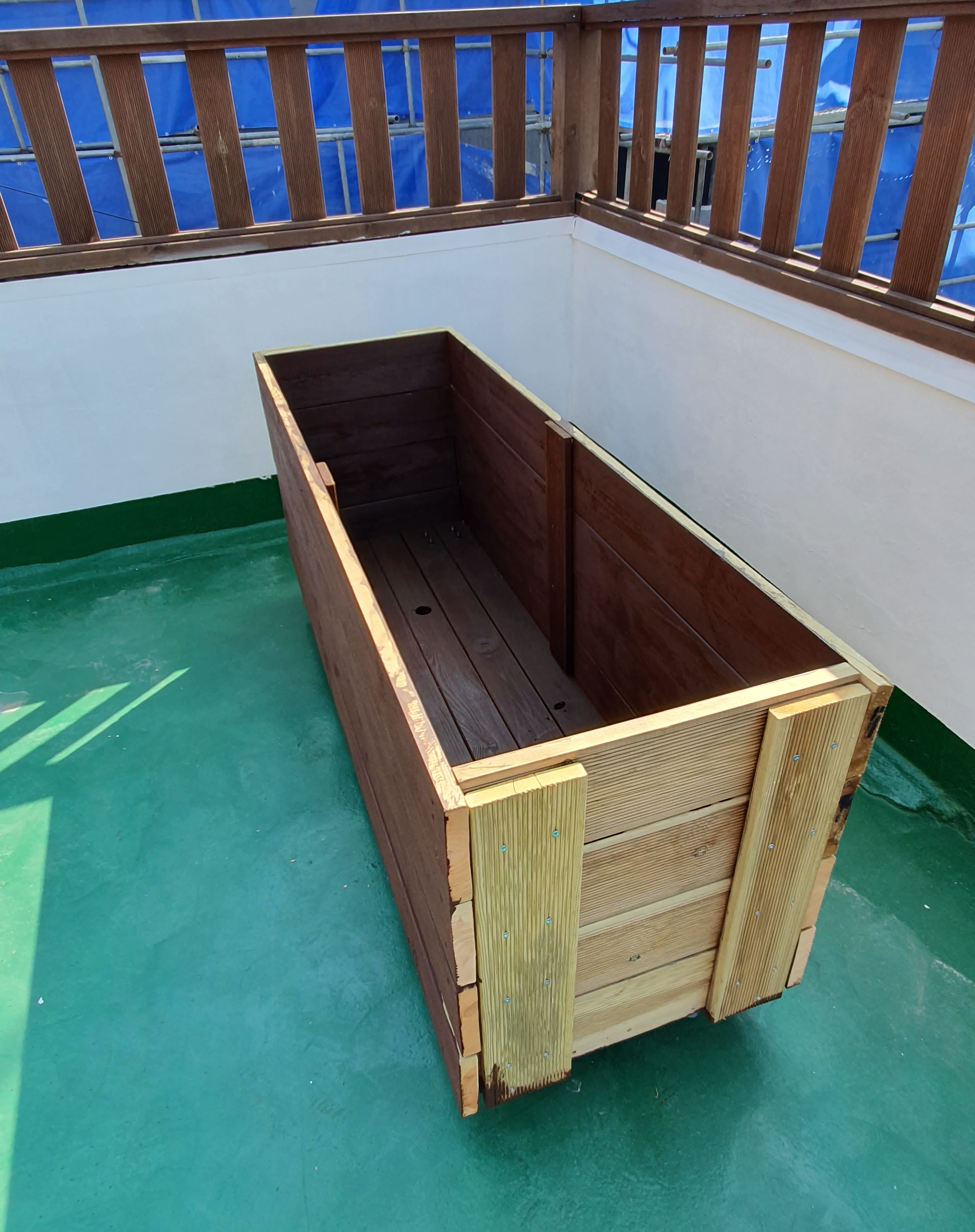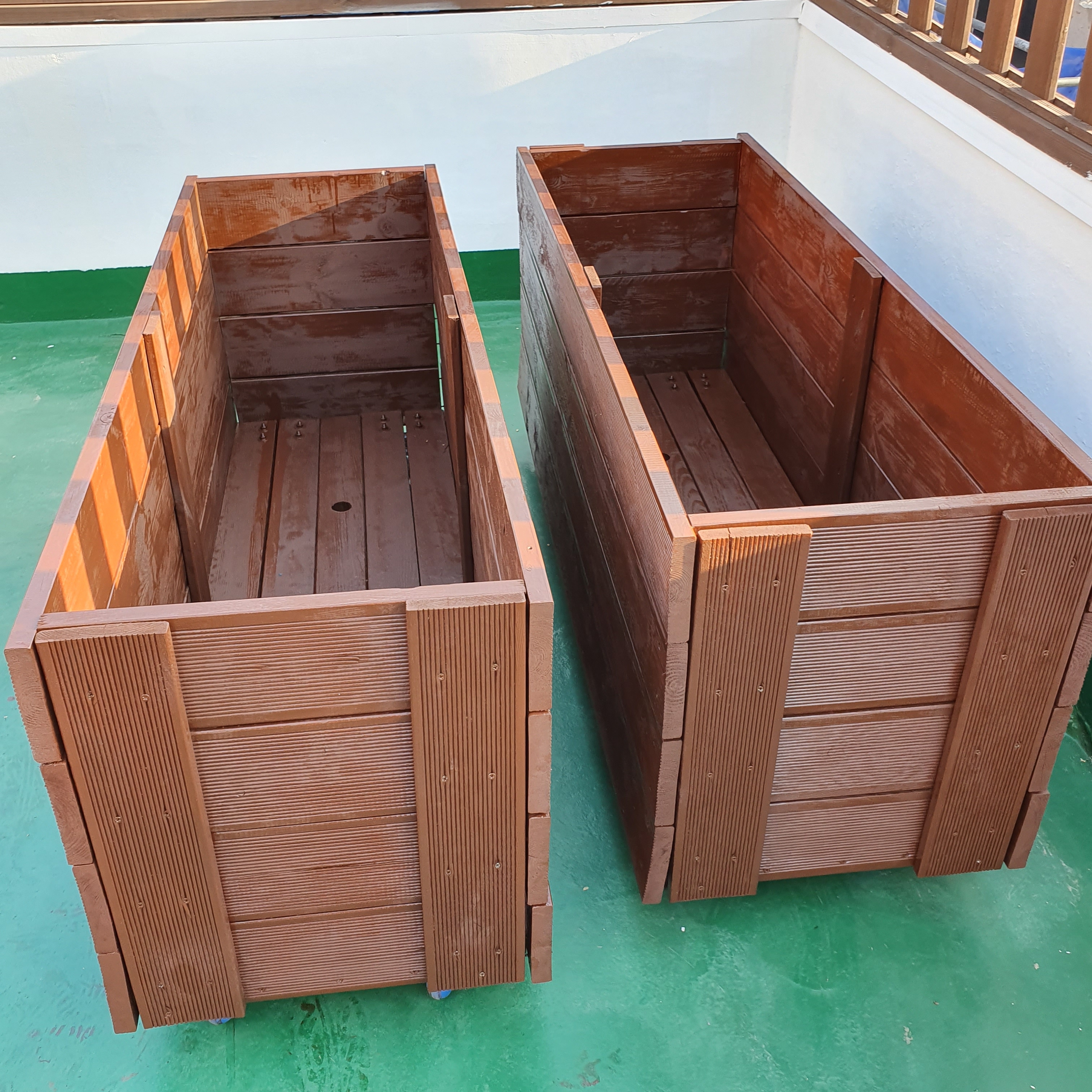 조립 완성된 대형 방부목 화분에