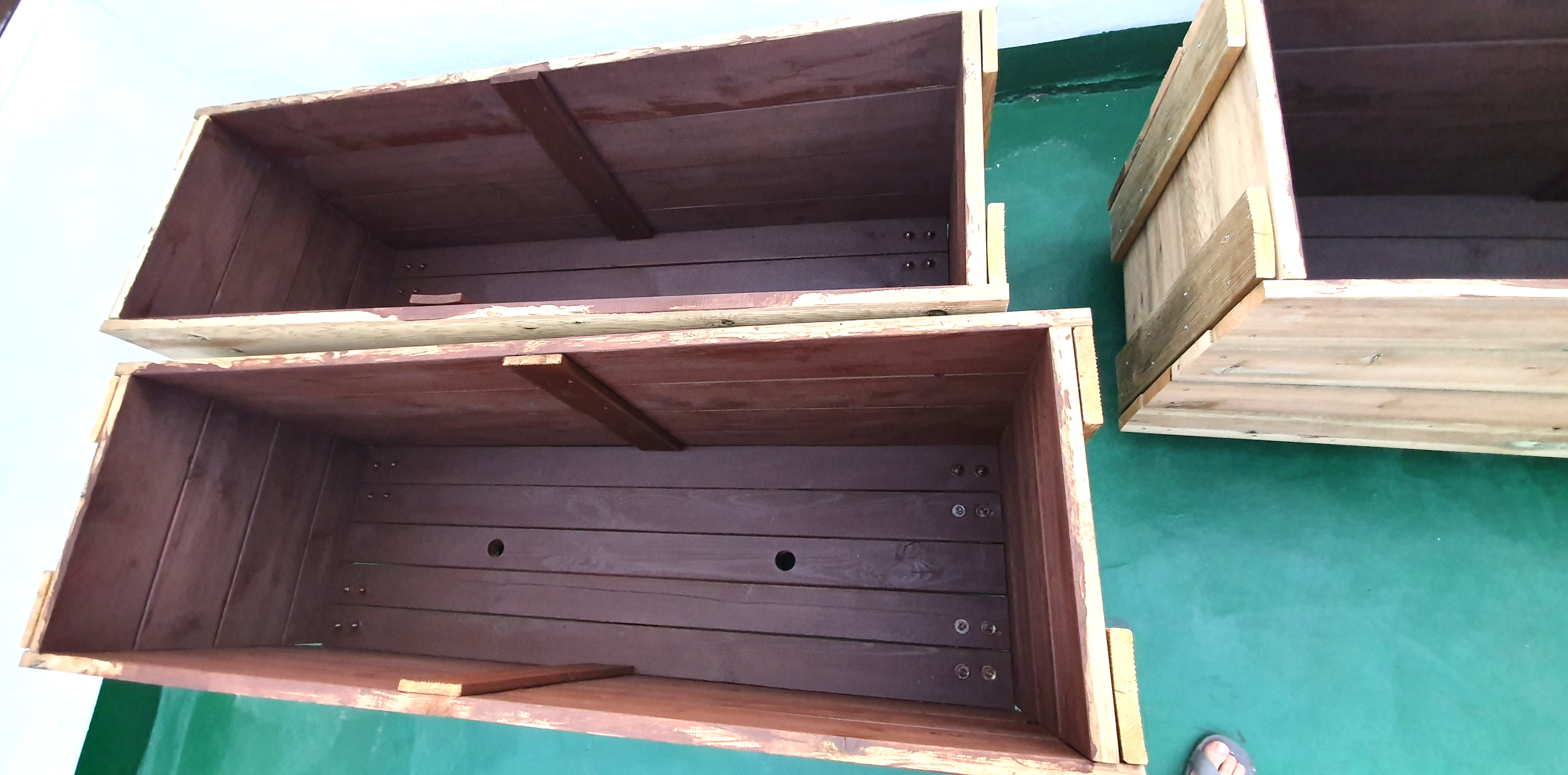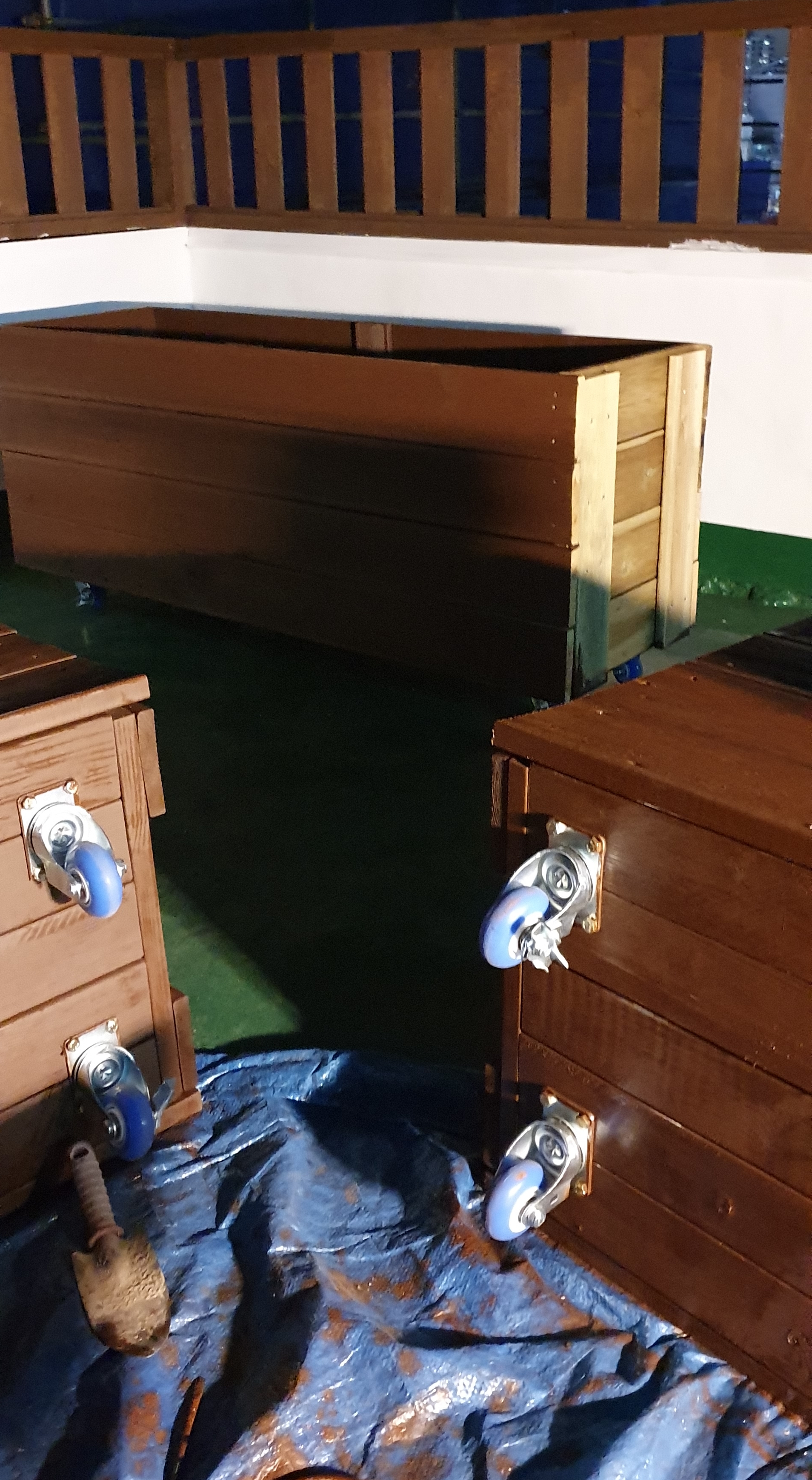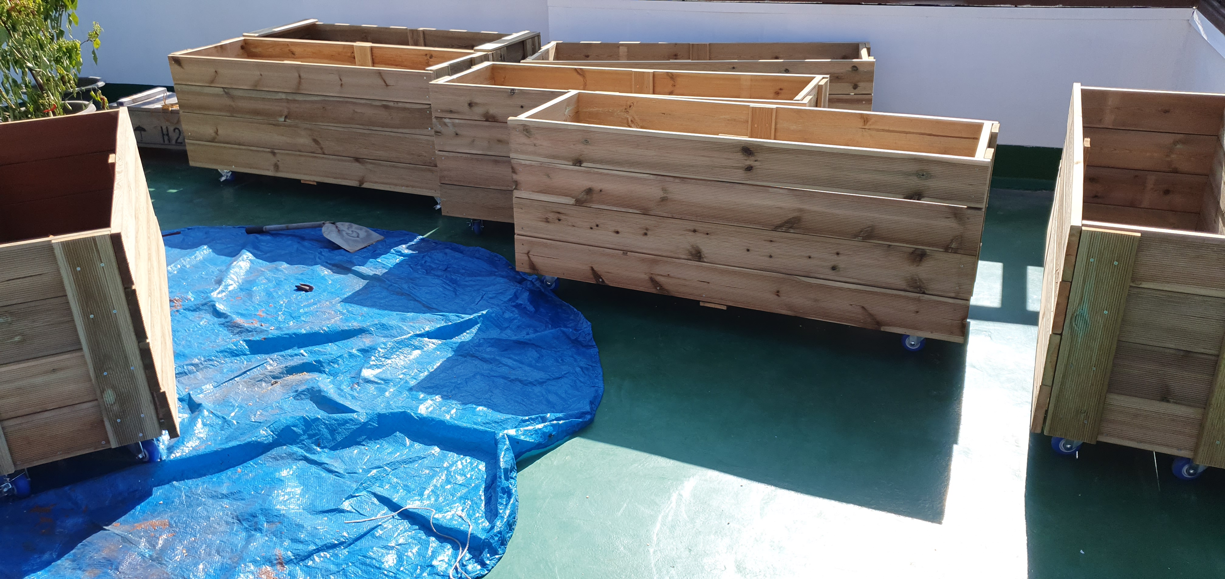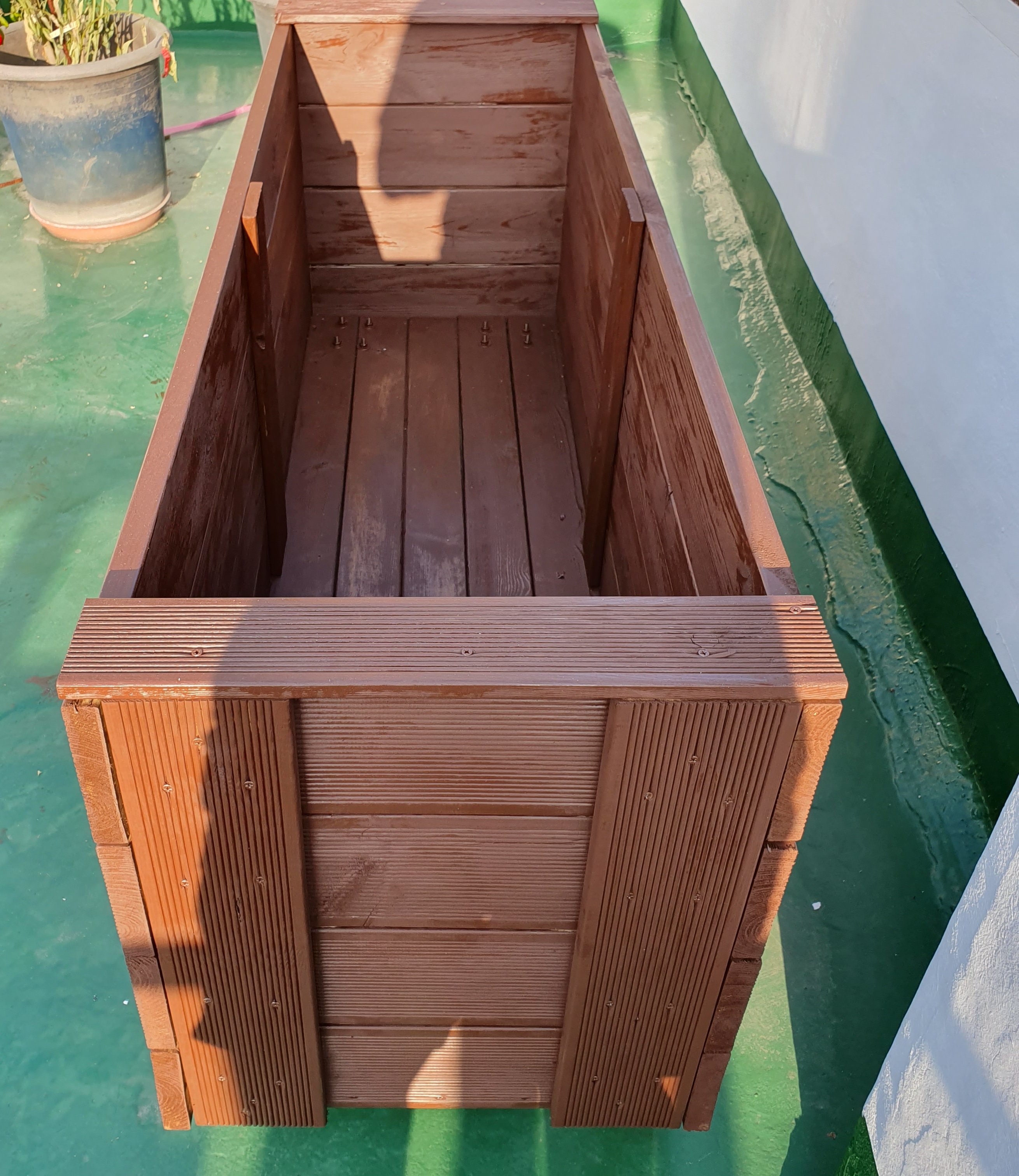 앞서 완성된 플랜트 방부목 화분은