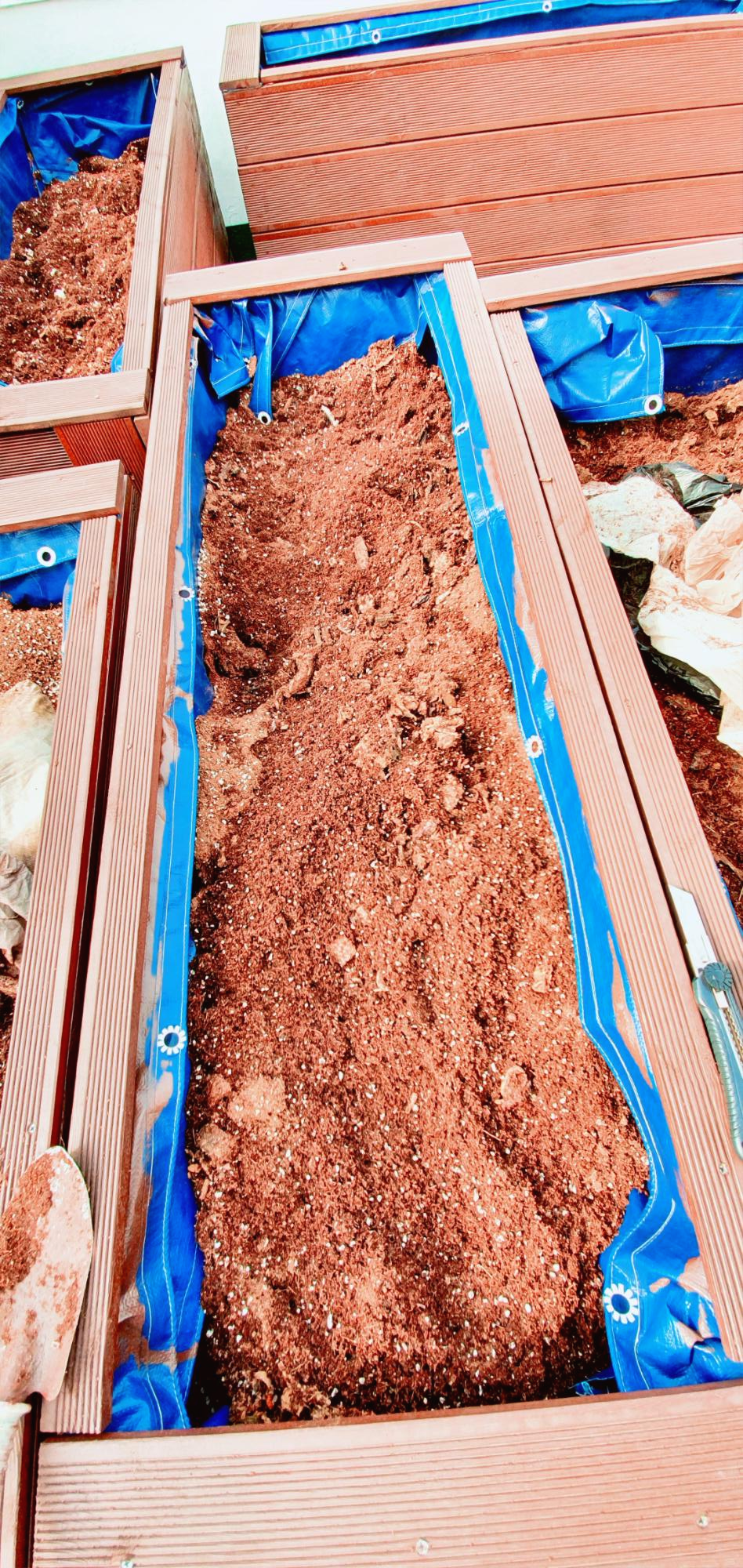 방수포 /부직포 작업이 끝나고 상토까지 화분에 작업이 끝났습니다.
