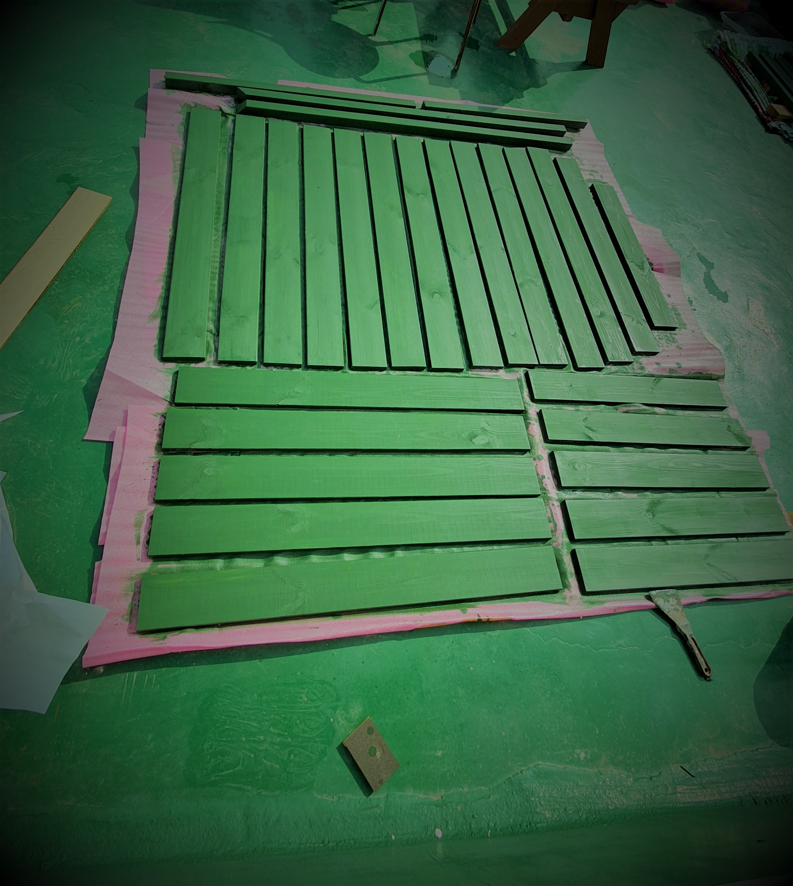 오일 스테인 색상은 녹색 계통으로 골라봤습니다.