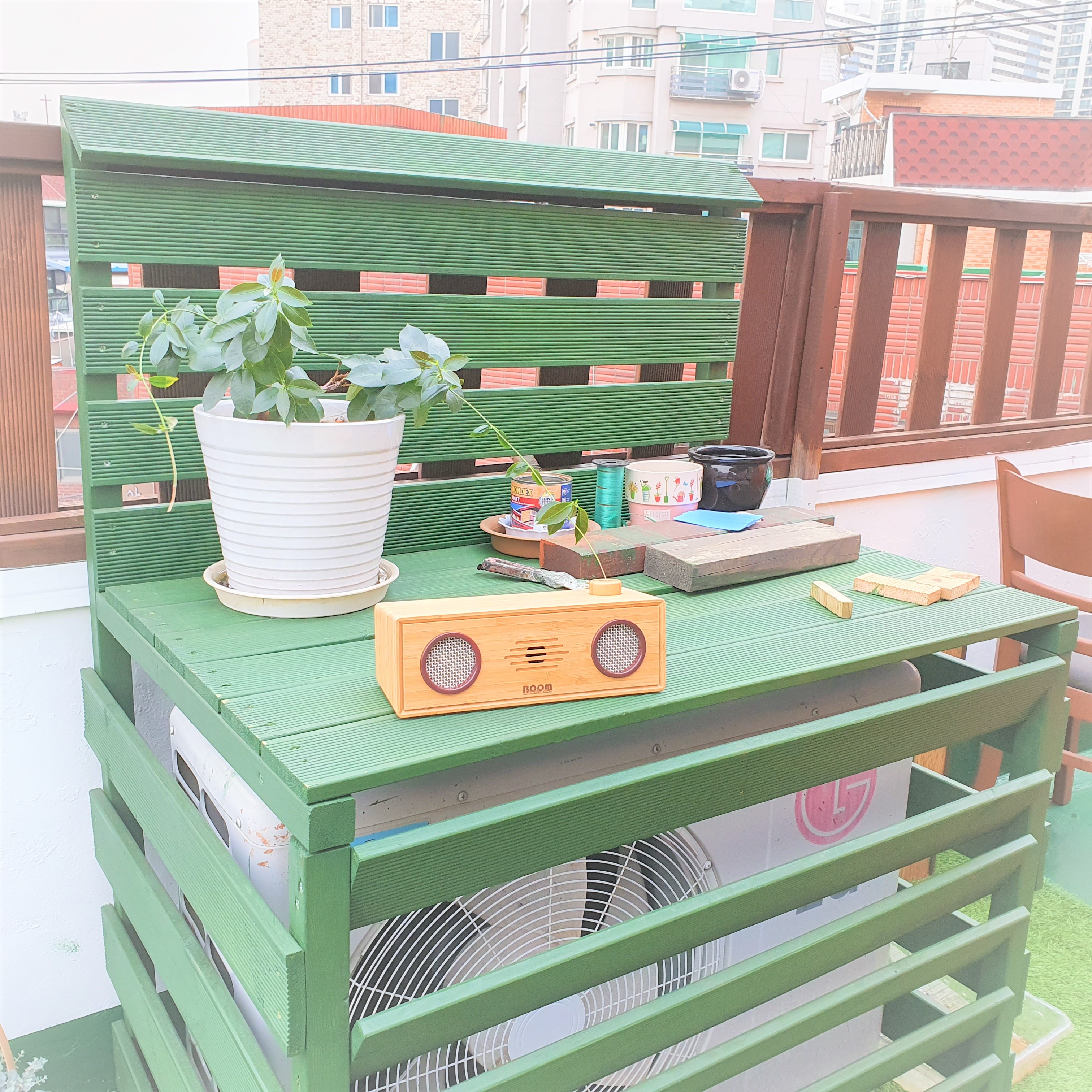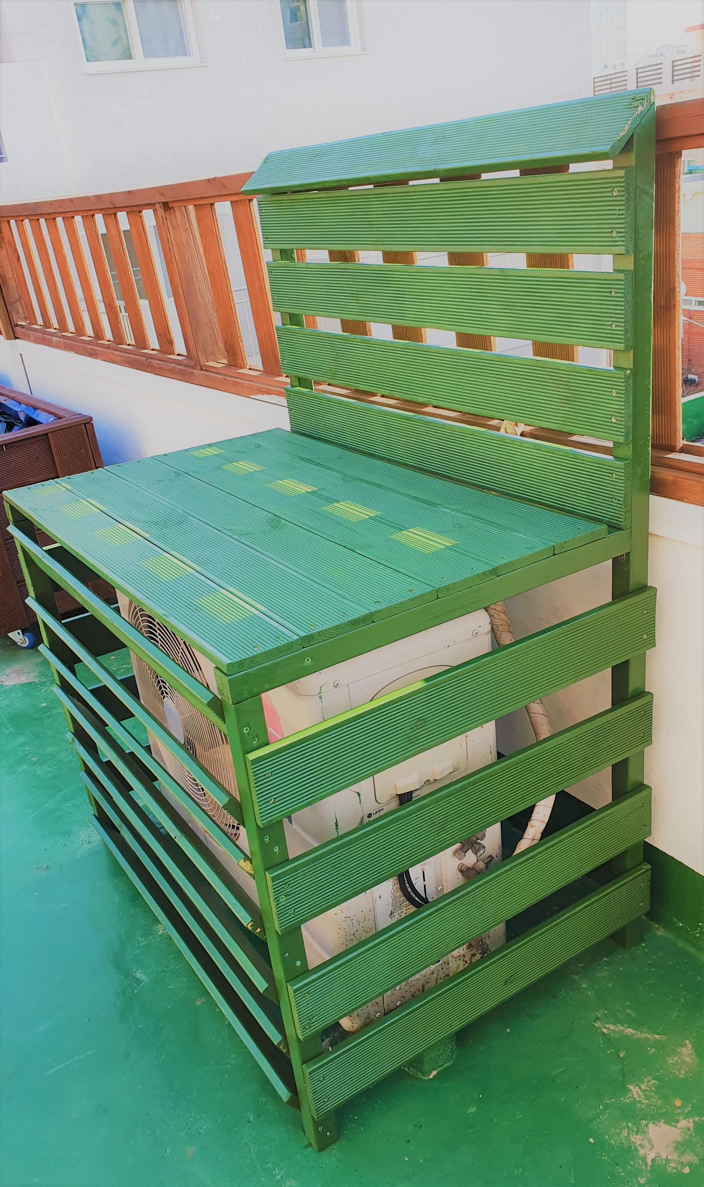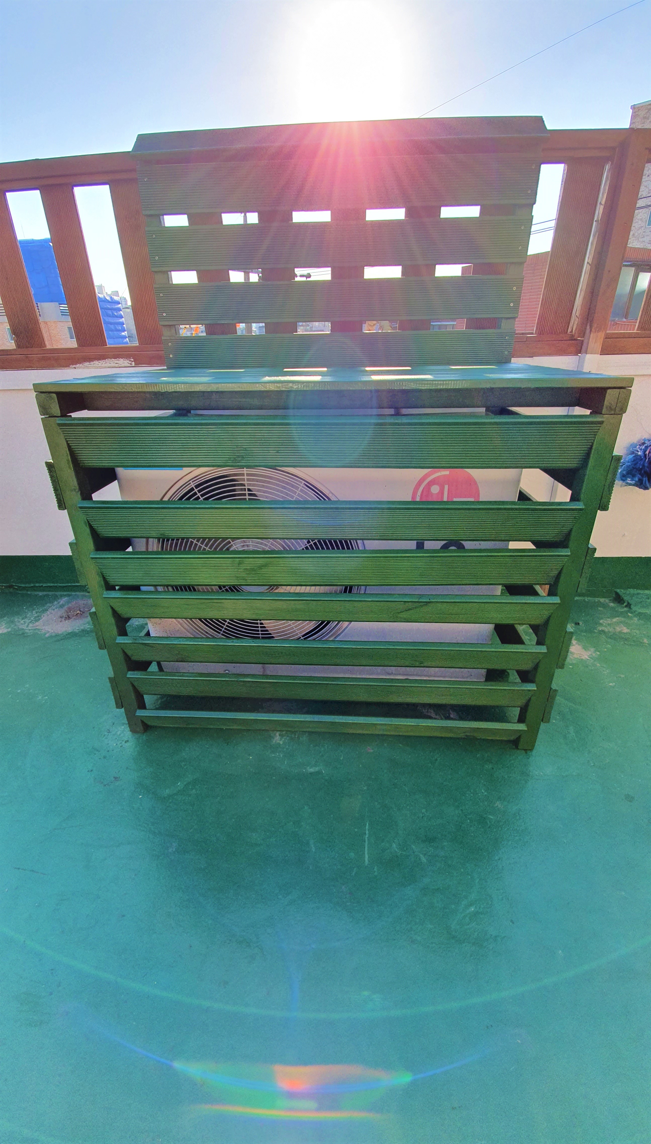 나중에 인조잔디까지 옥상 인테리어 작업이 끝나면 에어컨 실외기 커버에도