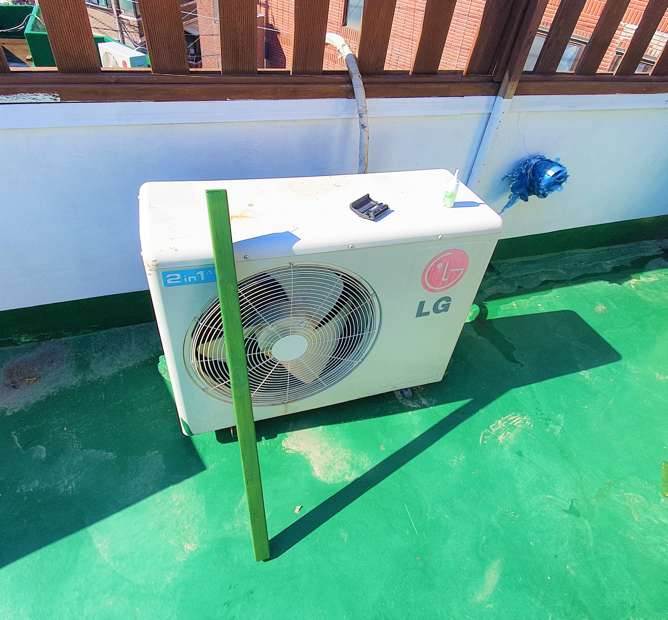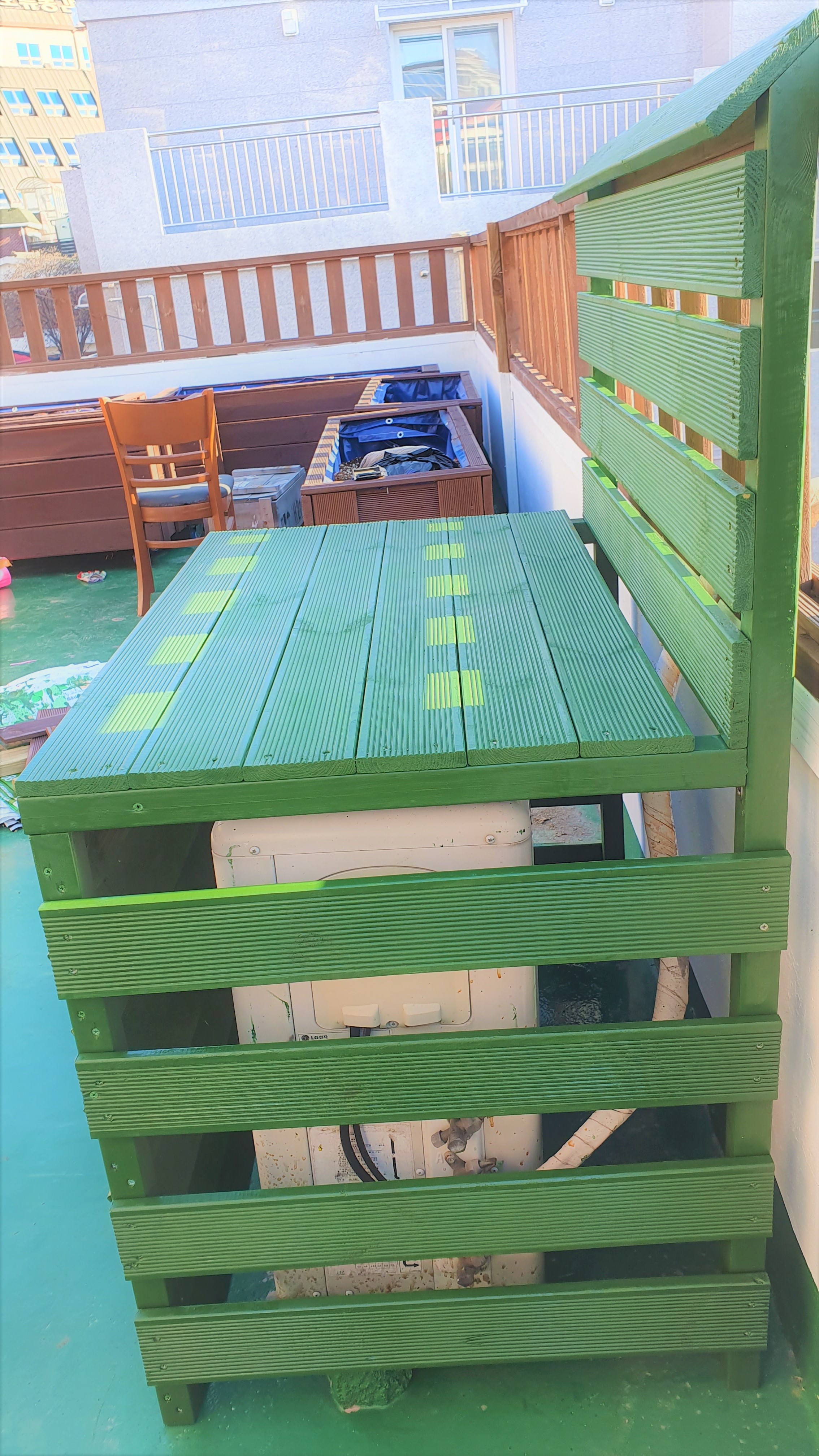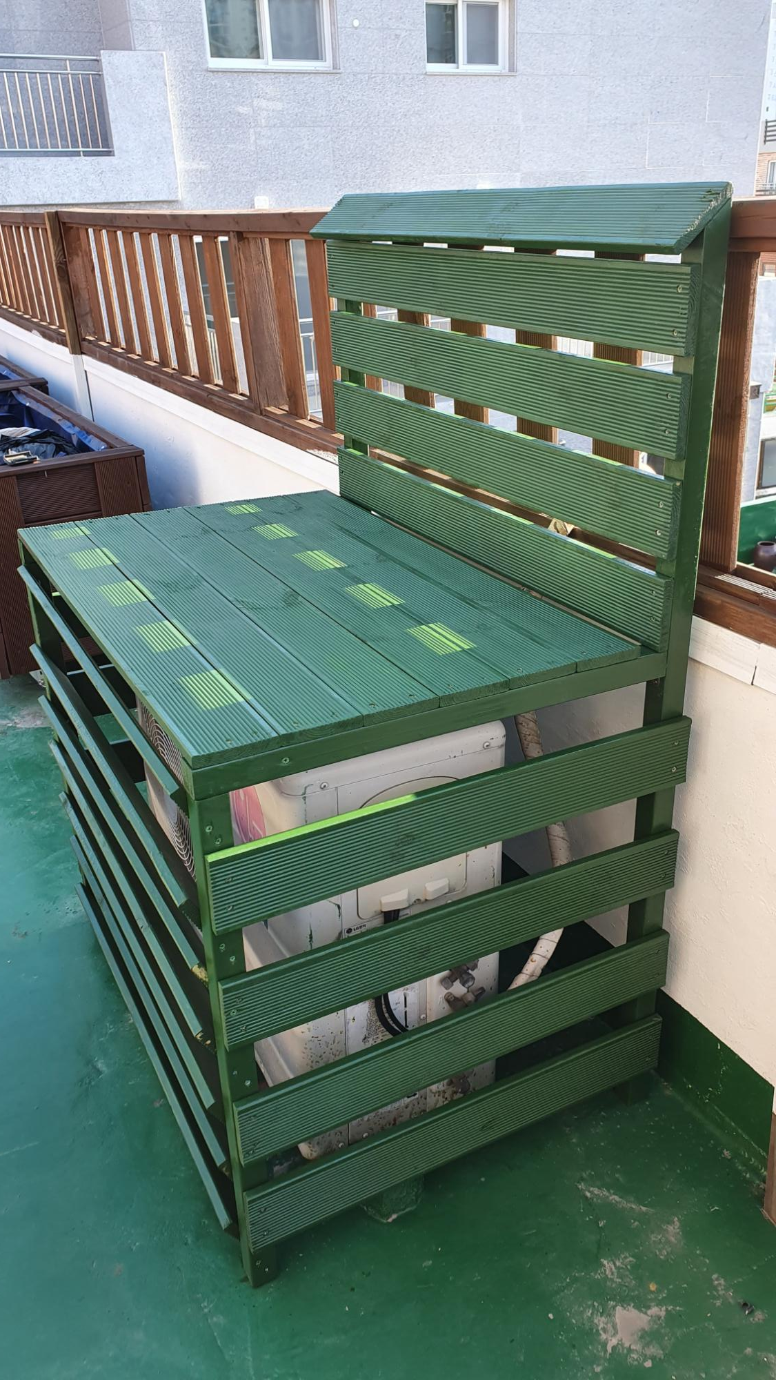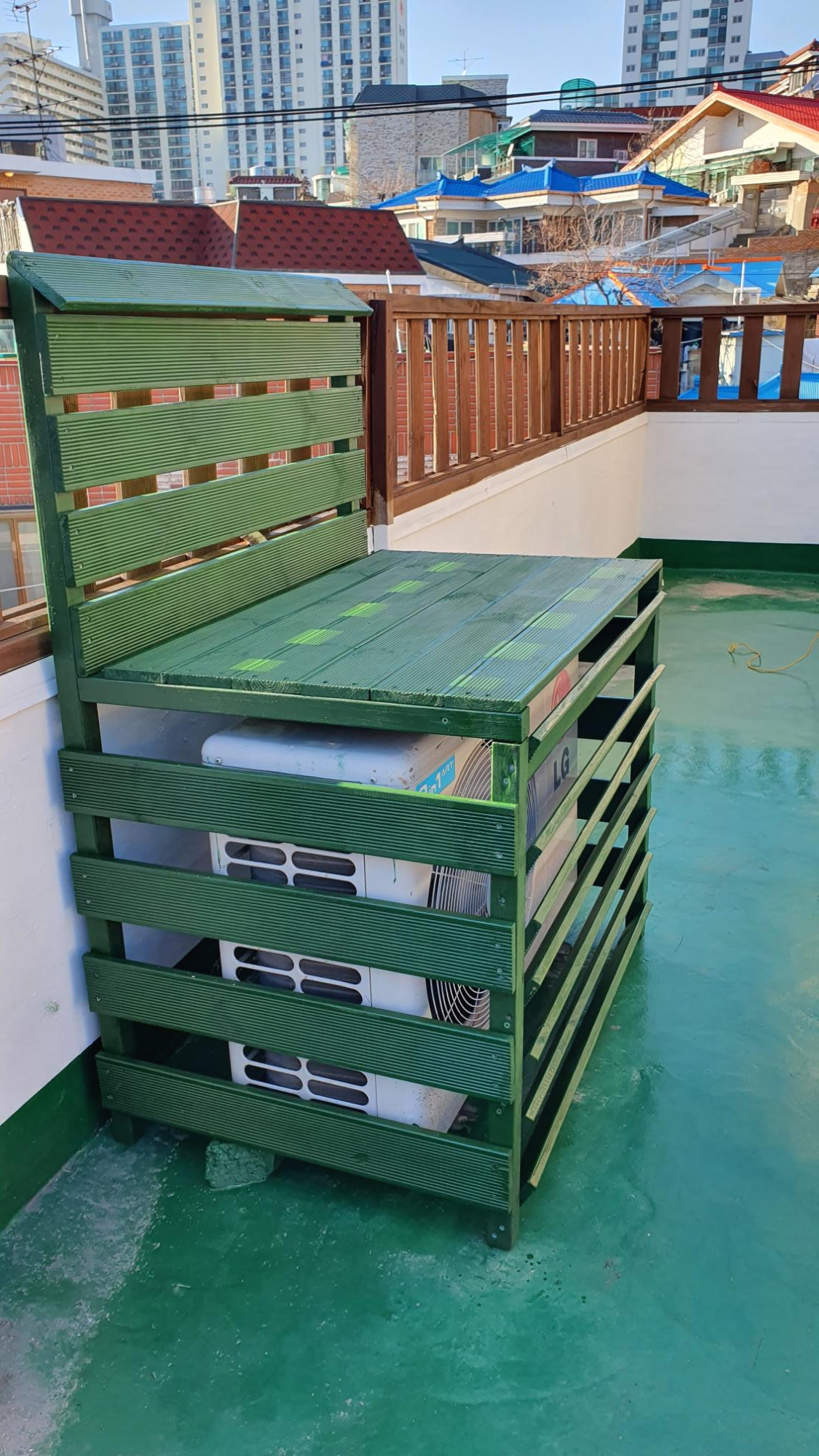 나중에 인조잔디까지 옥상 인테리어 작업이 끝나면 에어컨 실외기 커버에도