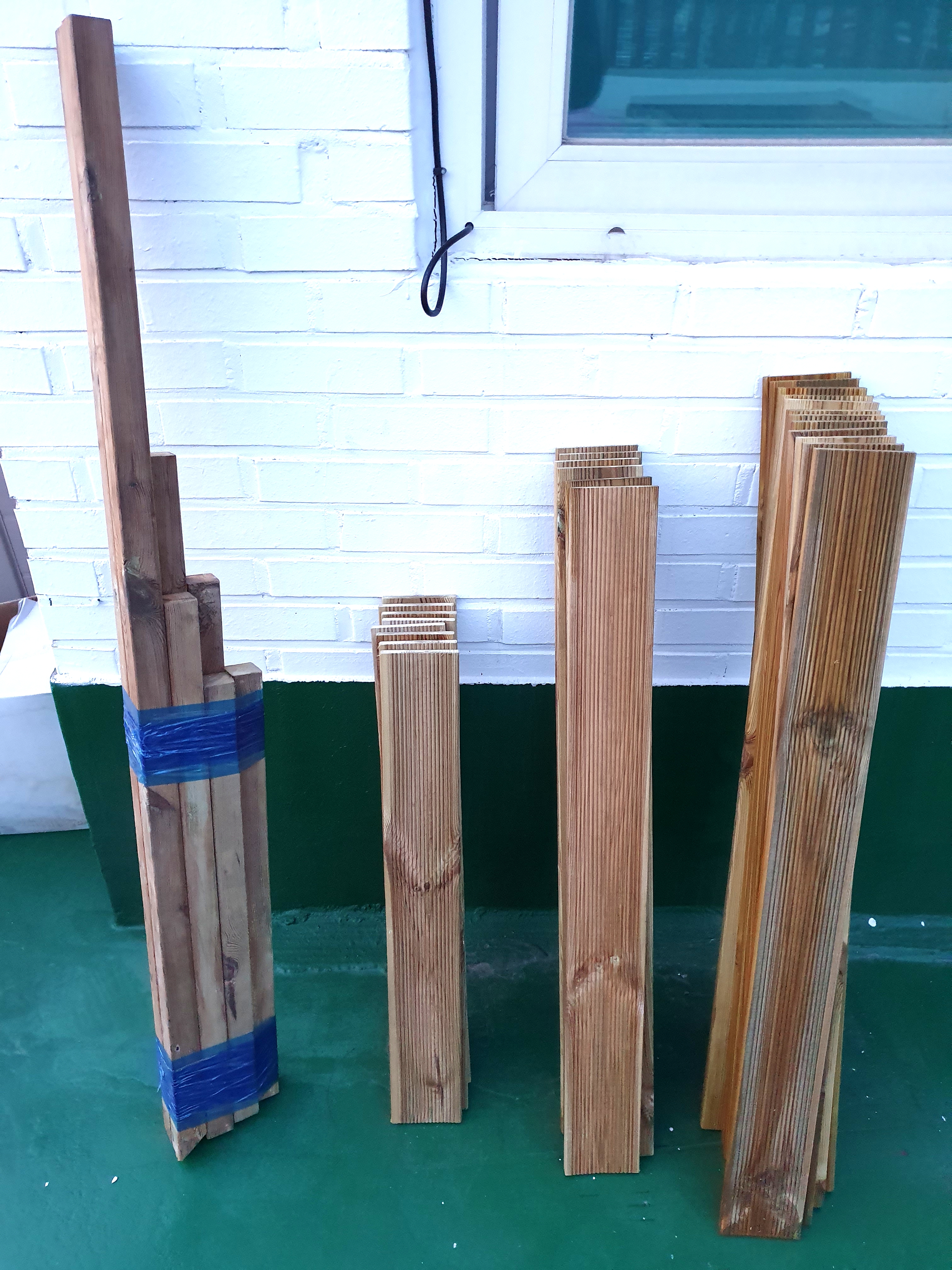 먼저, 각 목재에 오일 스테인 작업부터 해보았습니다.