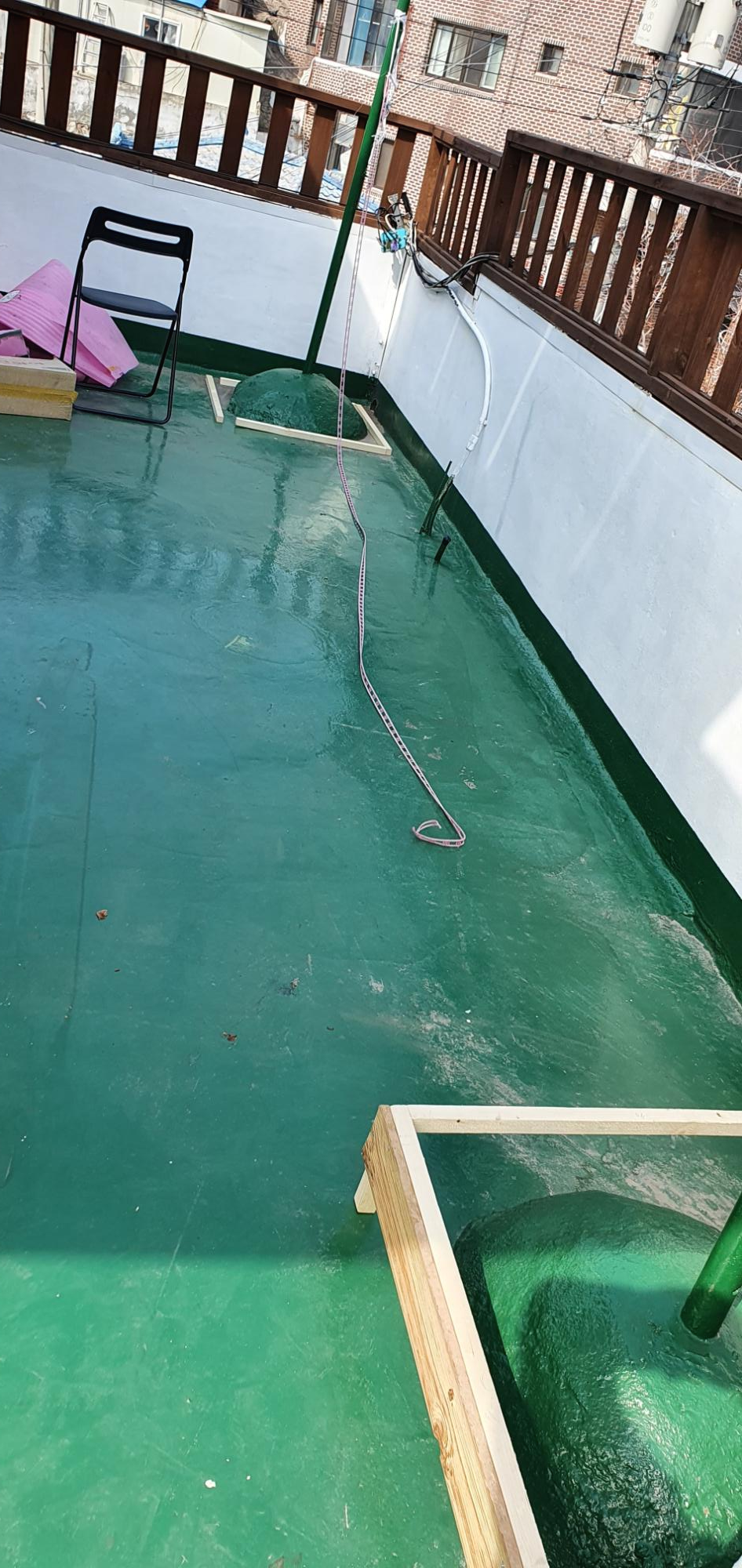 지금은 사용하지 않는 것으로 보이는 흉측스러운 옥상 배관 파이프와 퍼런 비닐 덮개 부분
