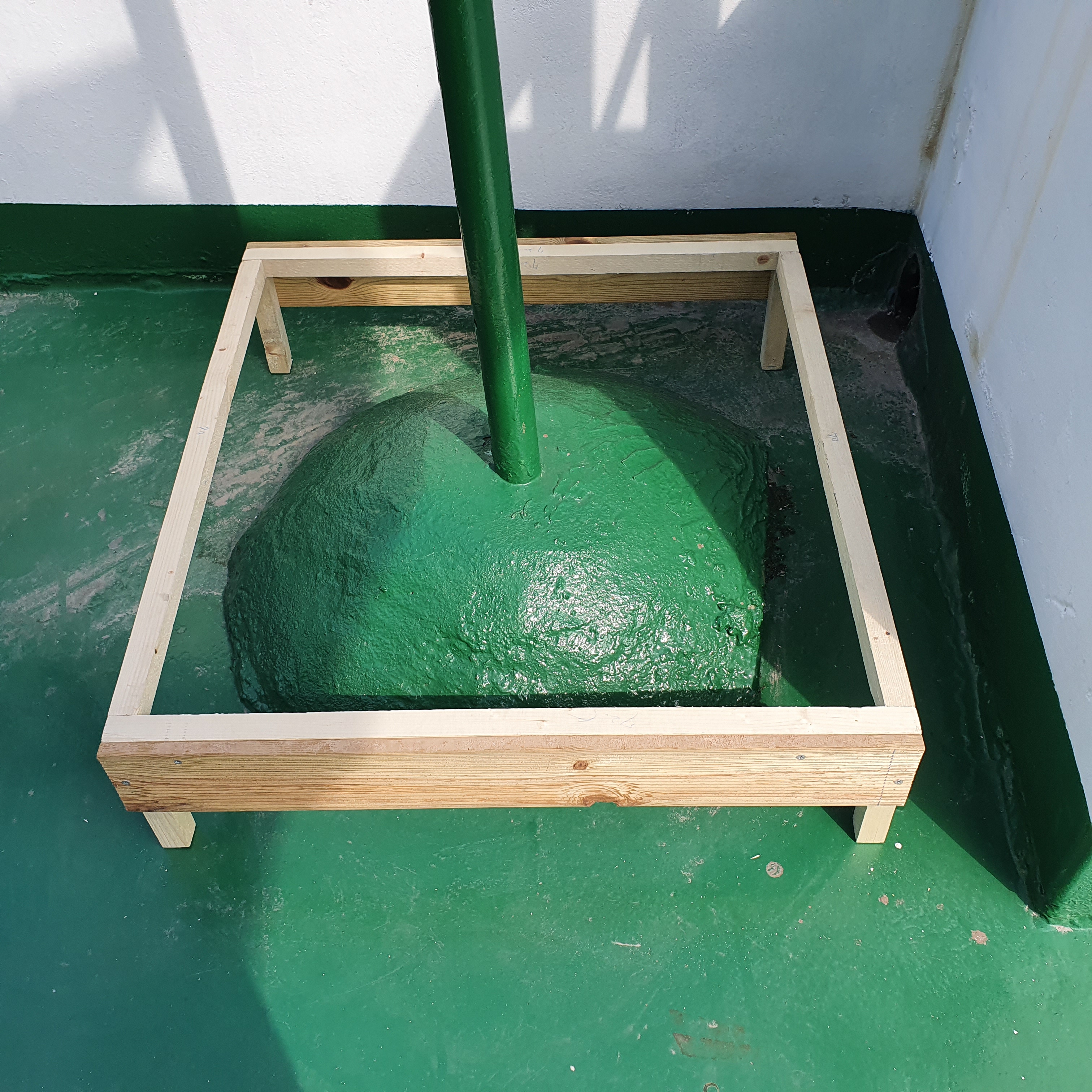 빨래 건조대 같은 경우는, 기둥 파이프를 고정시키기 위해 돔 형태로 시멘트 마감을 하여