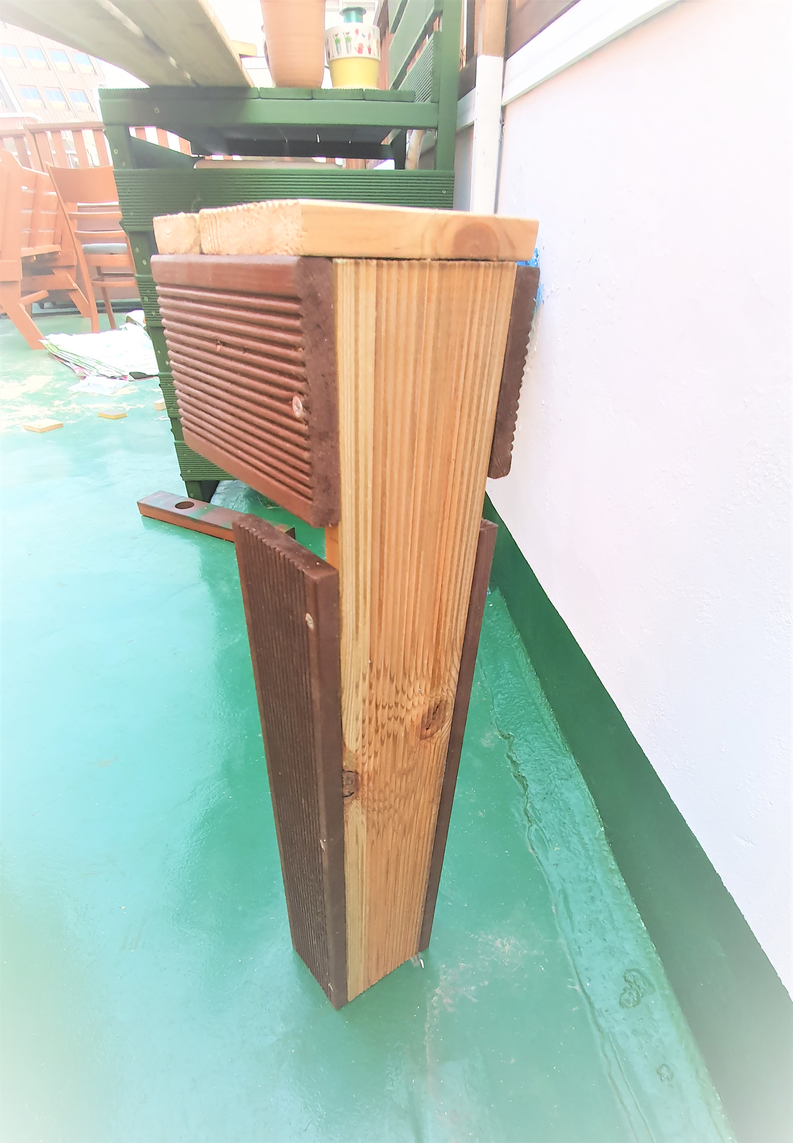 재료는 방부목 테크재로 플랜트 화분을 만들고 남은 조각들을 버리지 않고 사용하였습니다.